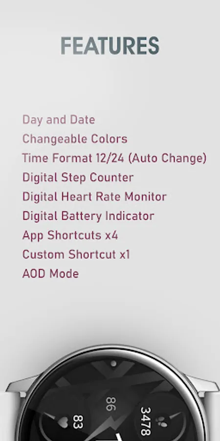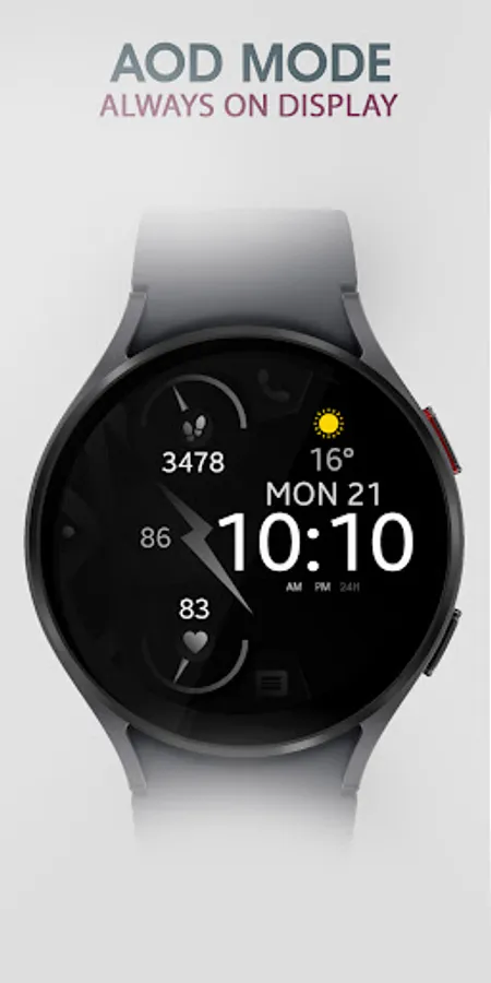 Graphite is a modern and elegant dark gray digital watch face for Wear OS smartwatches. This sleek design combines style and simplicity, ideal for those who appreciate a clean and sophisticated look.