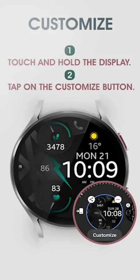 - Simply touch and hold the display, then tap on the "Customize" button.