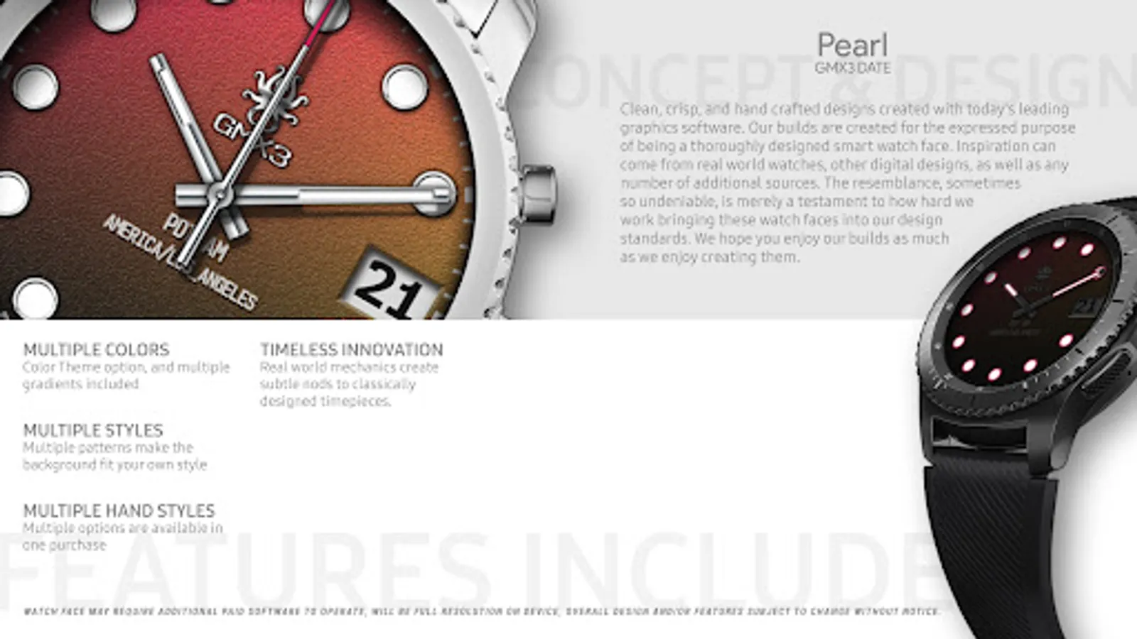 A Wear OS watch face with multiple colors, materials, hand styles, and more the entire GMX3 Series contains options that allow you to fit your own style while maintaining easily glanceable designs.