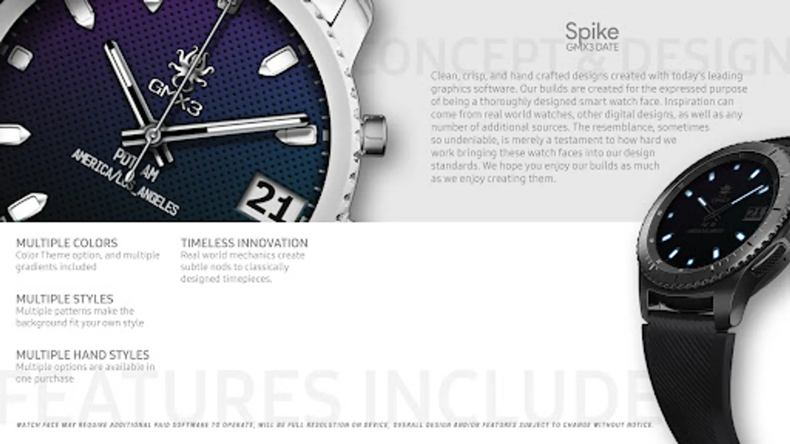 A Wear OS watch face with multiple colors, materials, hand styles, and more the entire GMX3 Series contains options that allow you to fit your own style while maintaining easily glanceable designs.