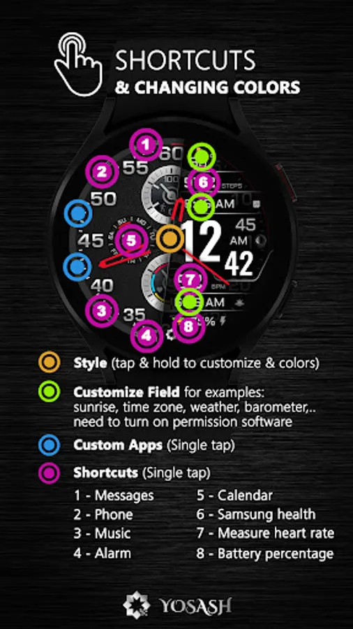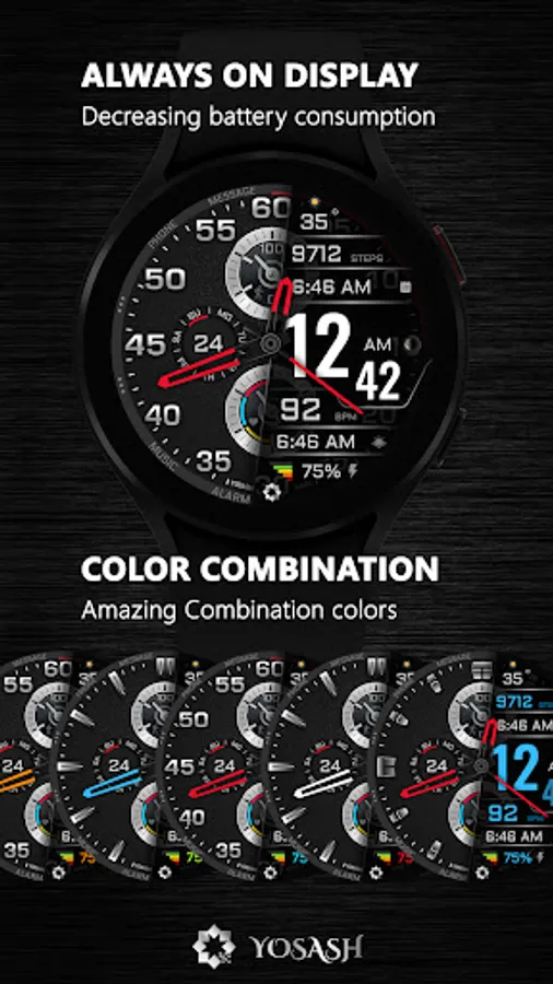 - Changeable Digits color, analog background & Hands color (tap & hold to customize & change colors)