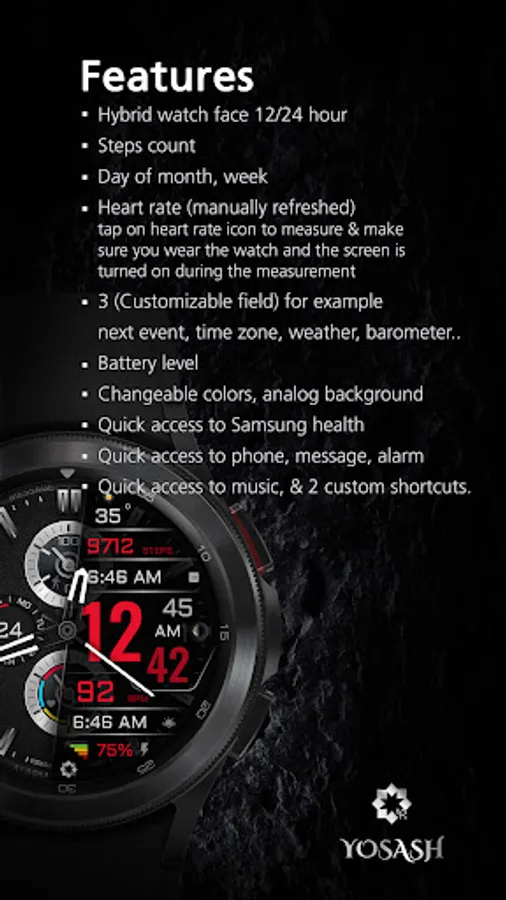 - Hybrid watch face switchable to 12/24 hour via Phone Settings