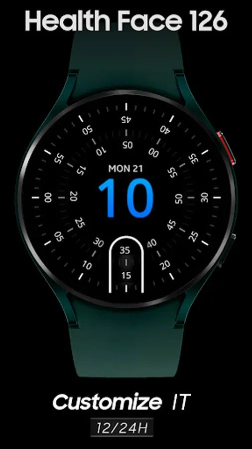 HEALTH FACE Nº126 is a digital watch face for your WEAR OS smart watch with WEAR OS. Thanks to this design you can enjoy customization, shortcuts and great style on the wrist of your hand.