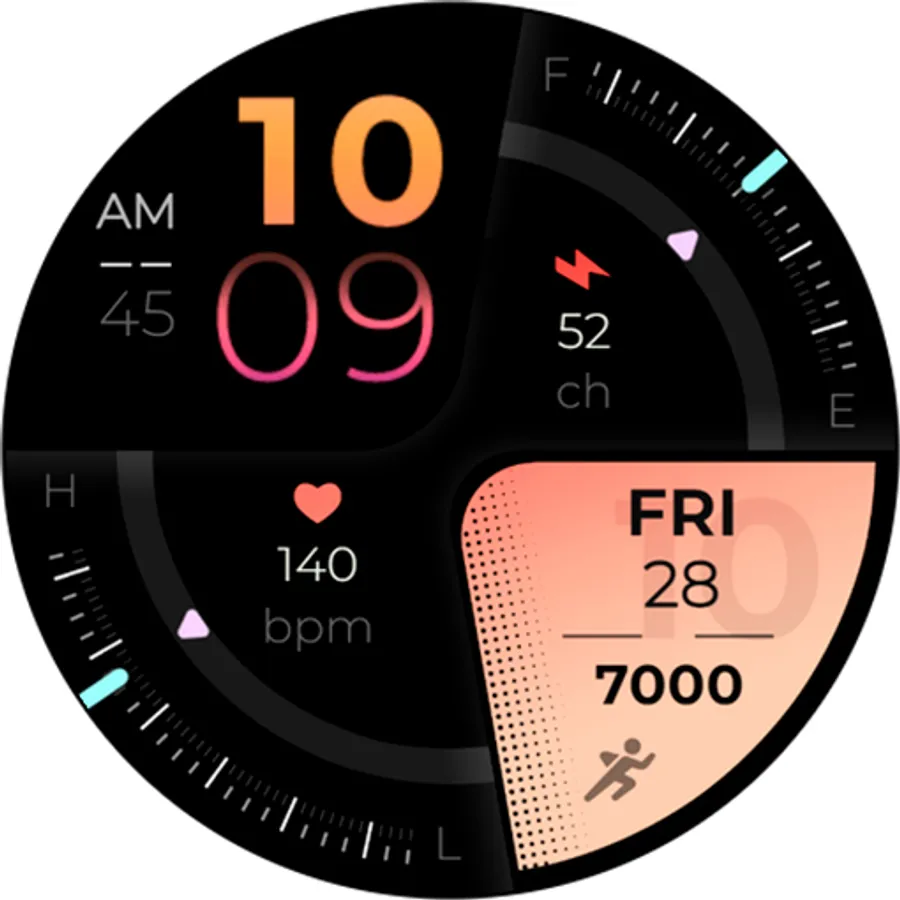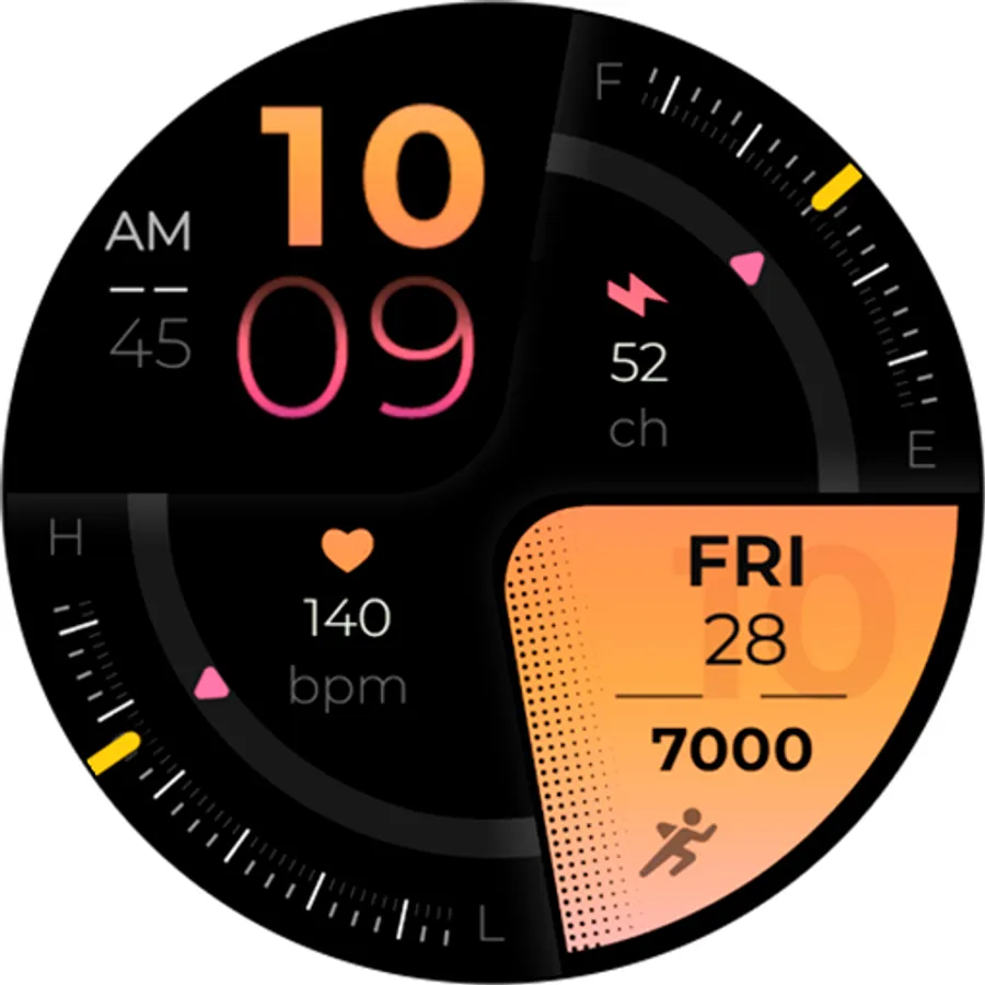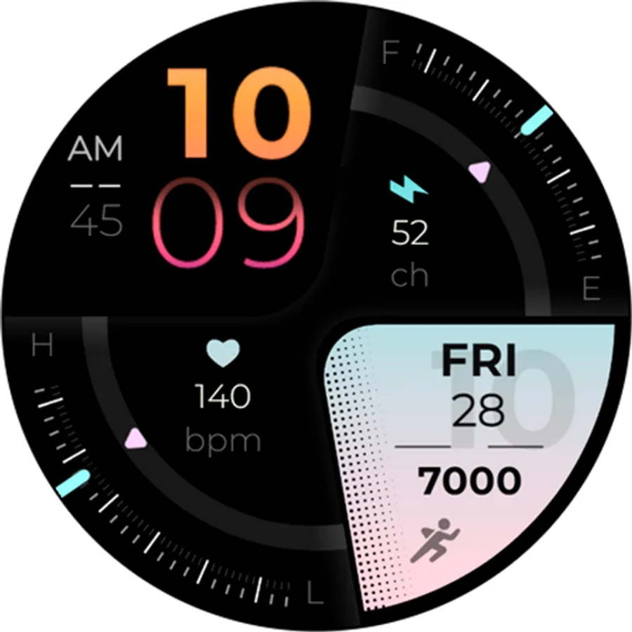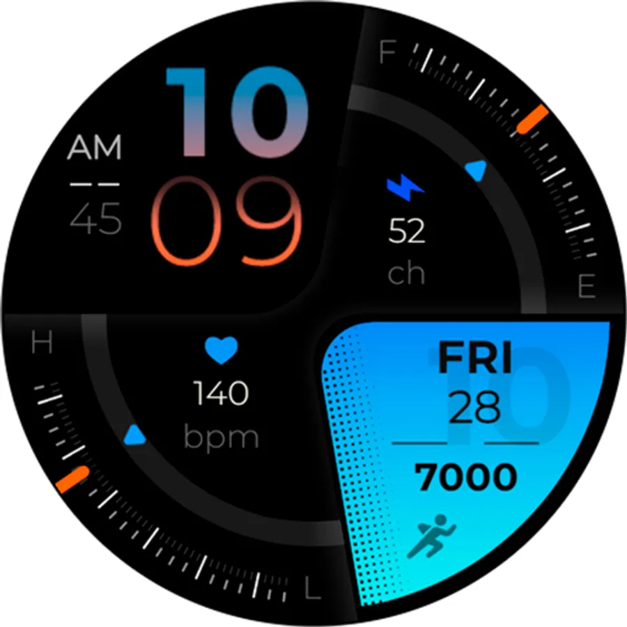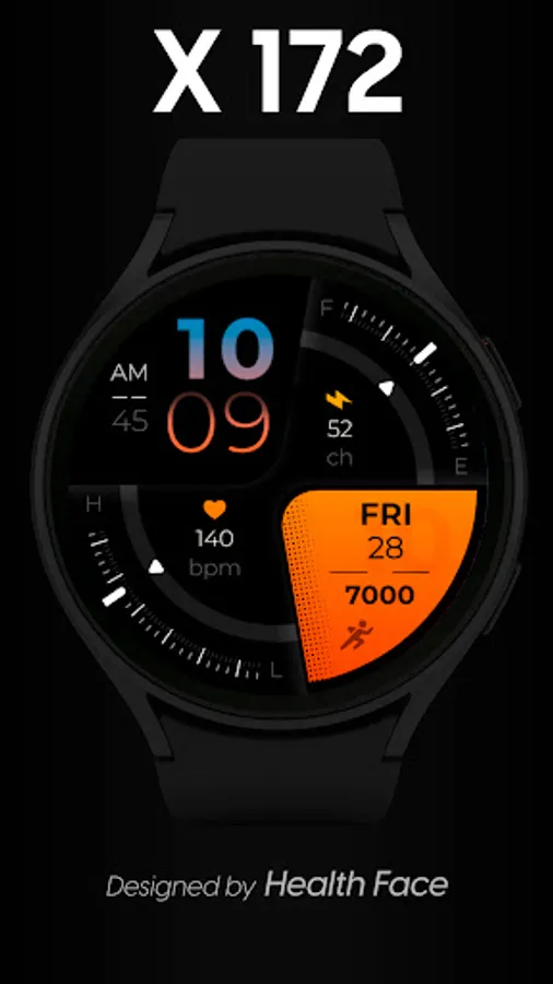 HEALTH FACE X 172 is a digital watch face for your smart watch with WEAR OS. Thanks to this design you can enjoy customization, shortcuts and great style on the wrist of your hand.