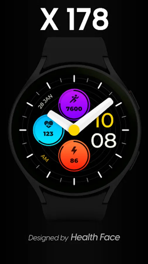 HEALTH FACE X 178 is a hybrid watch face for your smart watch with WEAR OS. Thanks to this design you can enjoy customization, shortcuts and great style on the wrist of your hand.