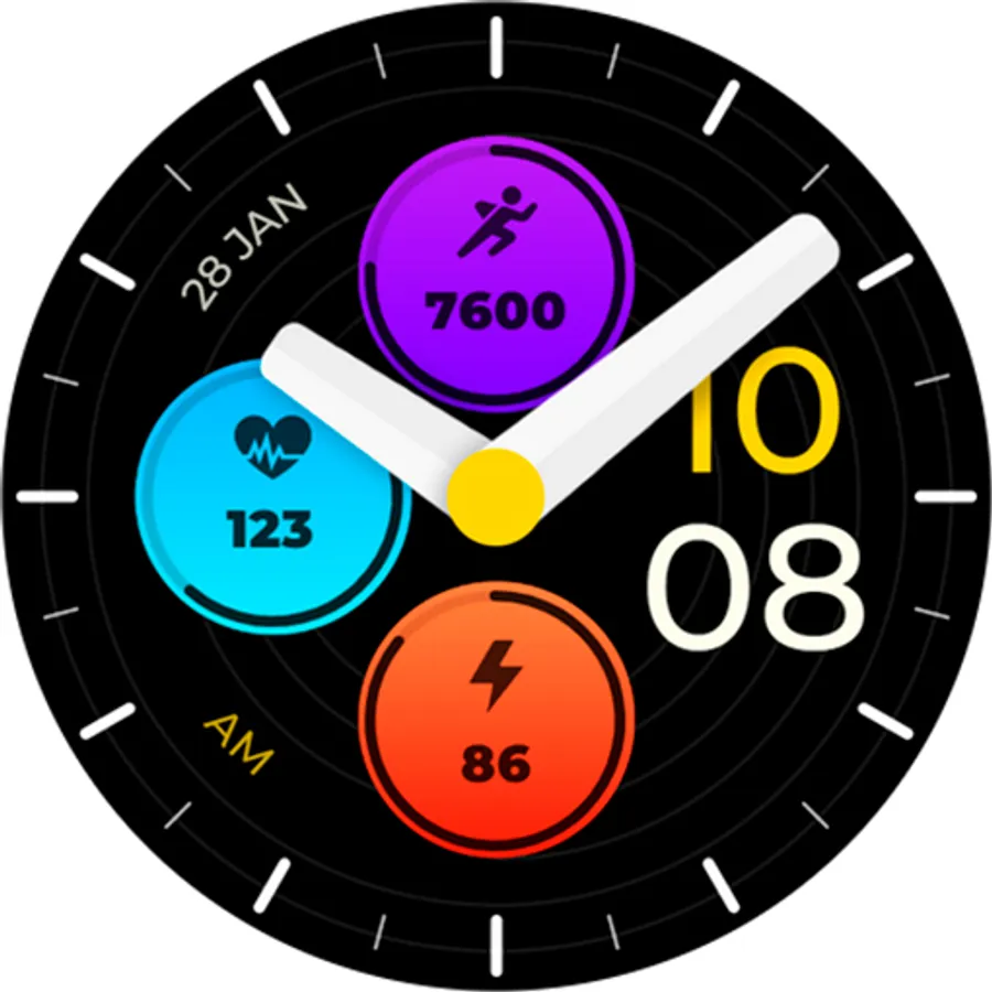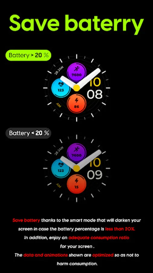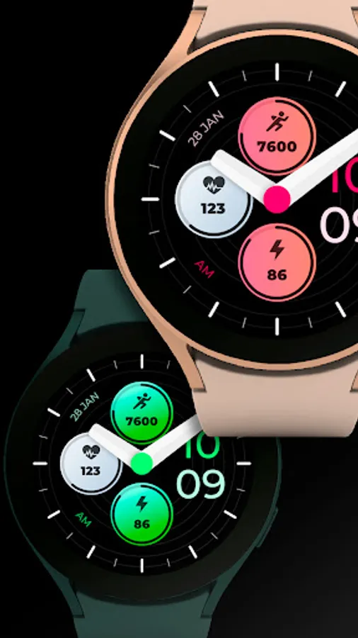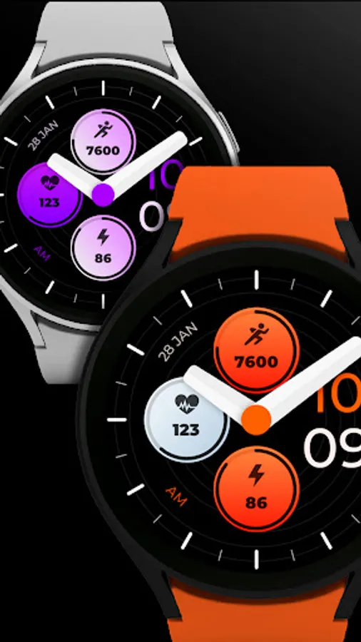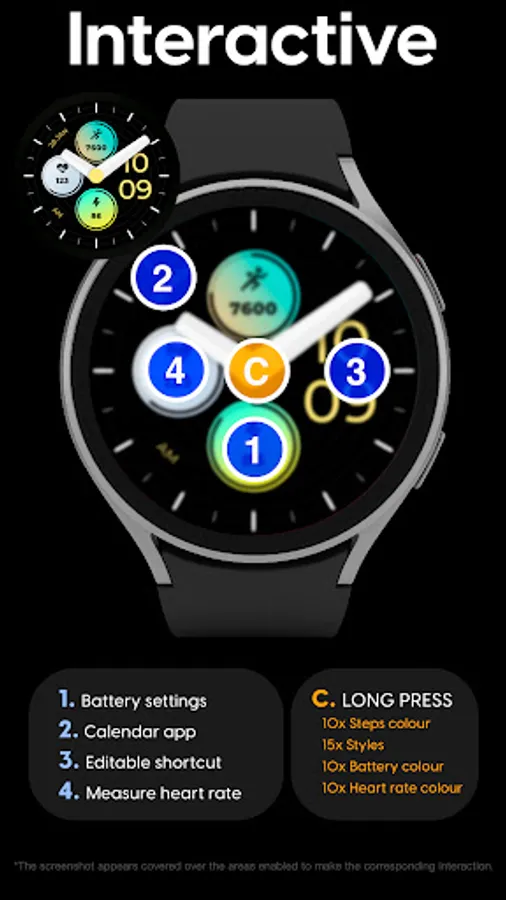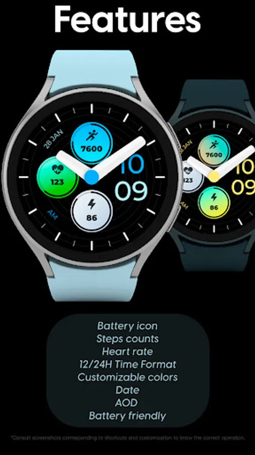 Customizable colors - Long press in the center of the watchface to change the styles. *See the screenshots*