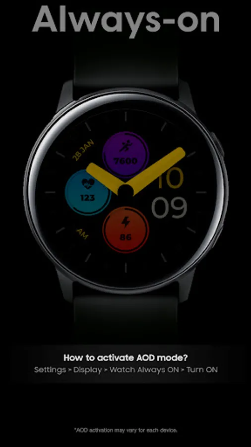 ***Note: If Google Play shows a message "Incompatible device", open the link from the internet search engine on PC or mobile and install the watchface from it. ***