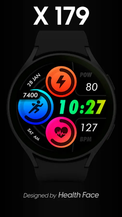 HEALTH FACE X 179 is a digital watch face for your smart watch with WEAR OS. Thanks to this design you can enjoy customization, shortcuts and great style on the wrist of your hand.