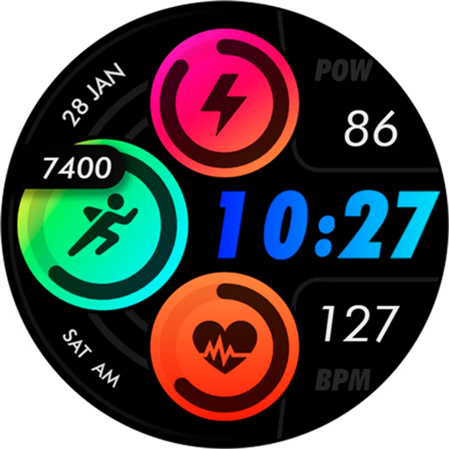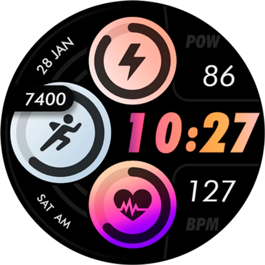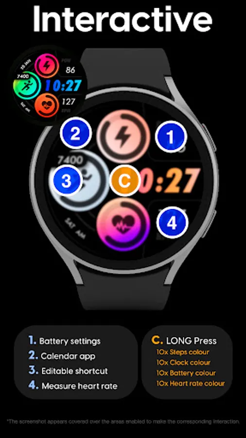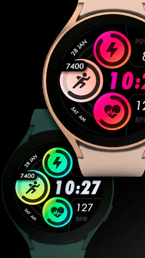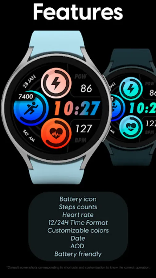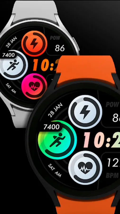 Customizable colors - Long press in the center of the watchface to change the styles. *See the screenshots*