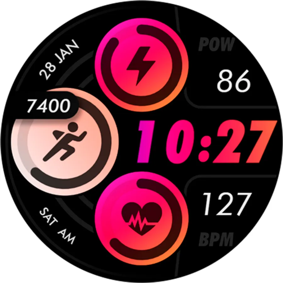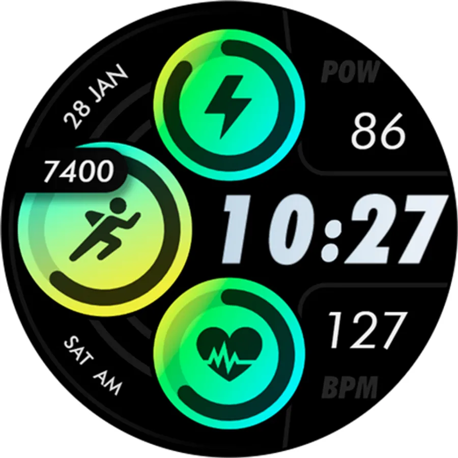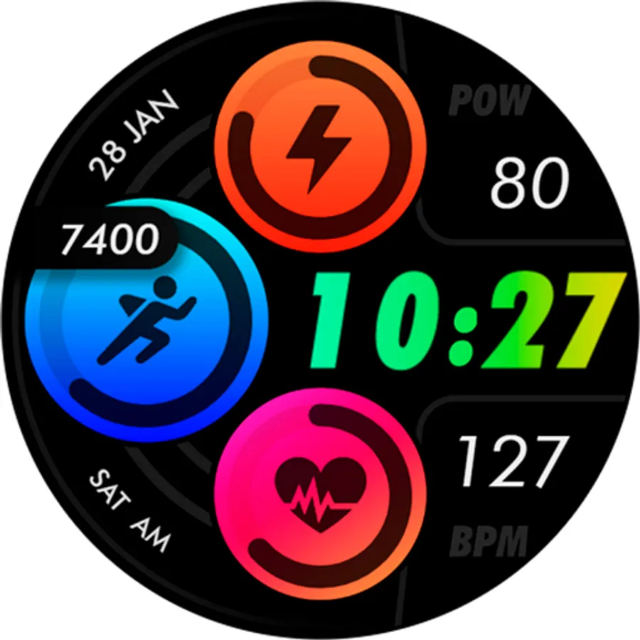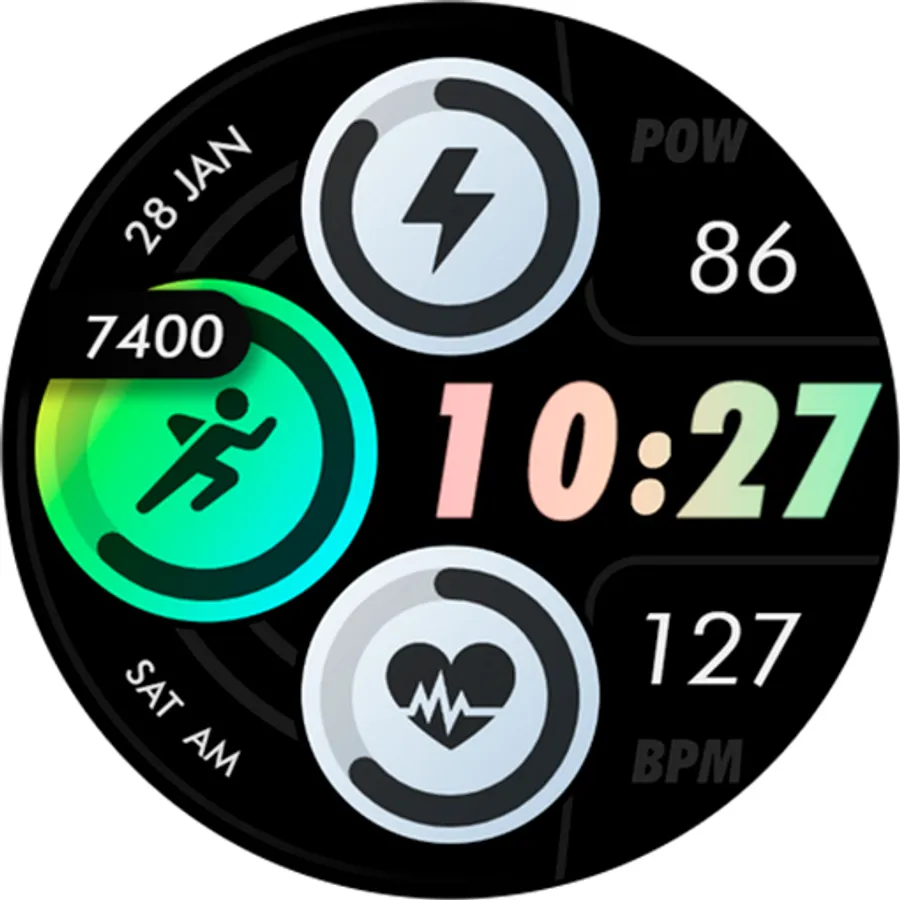Customizable colors - Long press in the center of the watchface to change the styles. *See the screenshots*