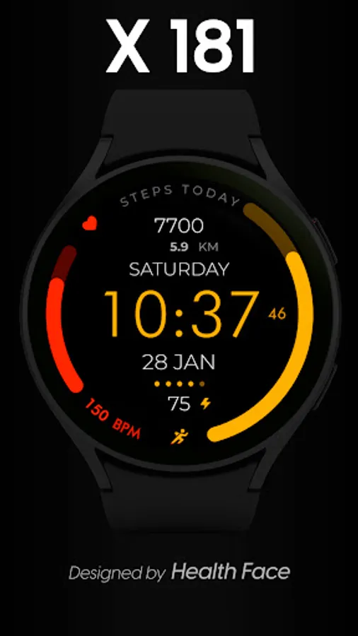 HEALTH FACE X 181 is a digital watch face for your smart watch with WEAR OS. Thanks to this design you can enjoy customization, shortcuts and great style on the wrist of your hand.