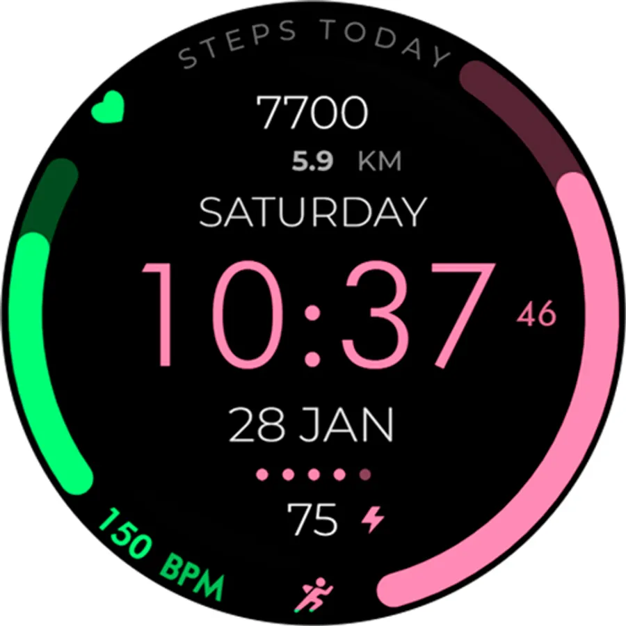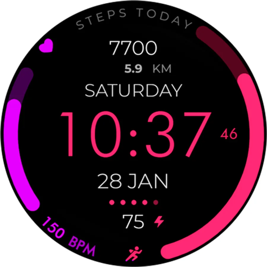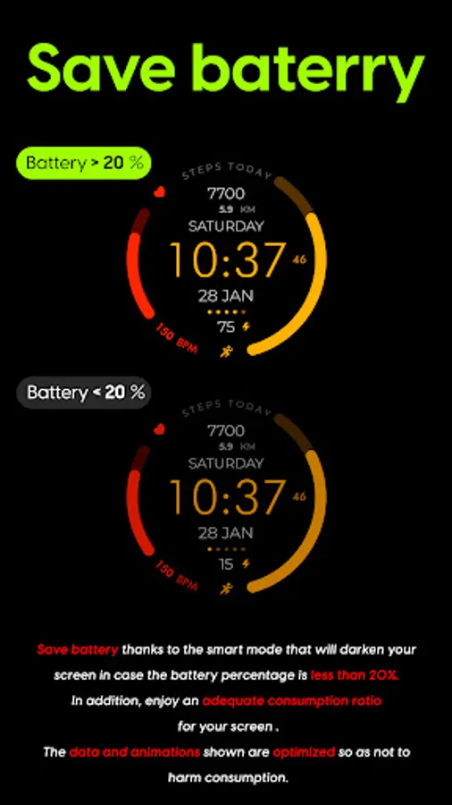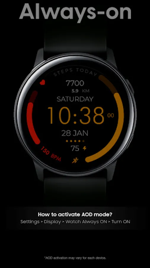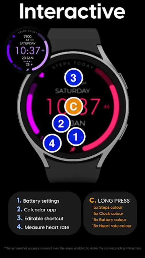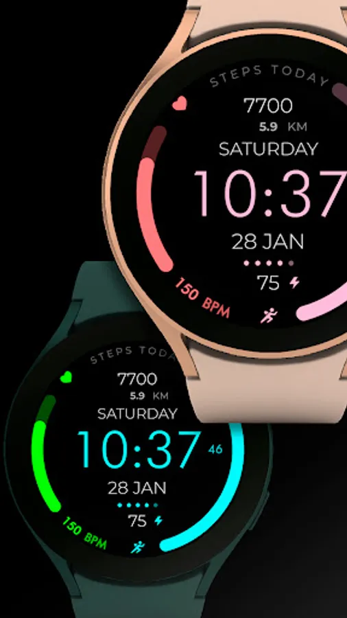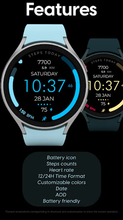 Customizable colors - Long press in the center of the watchface to change the styles. *See the screenshots*