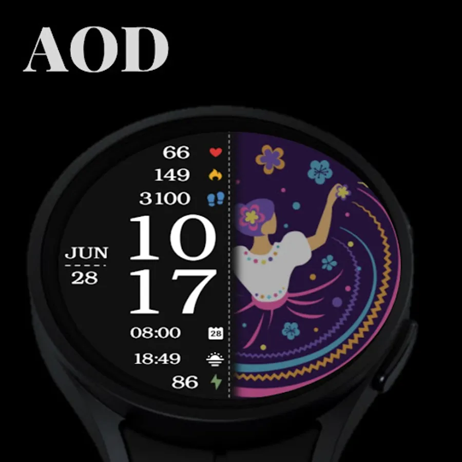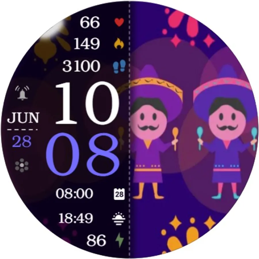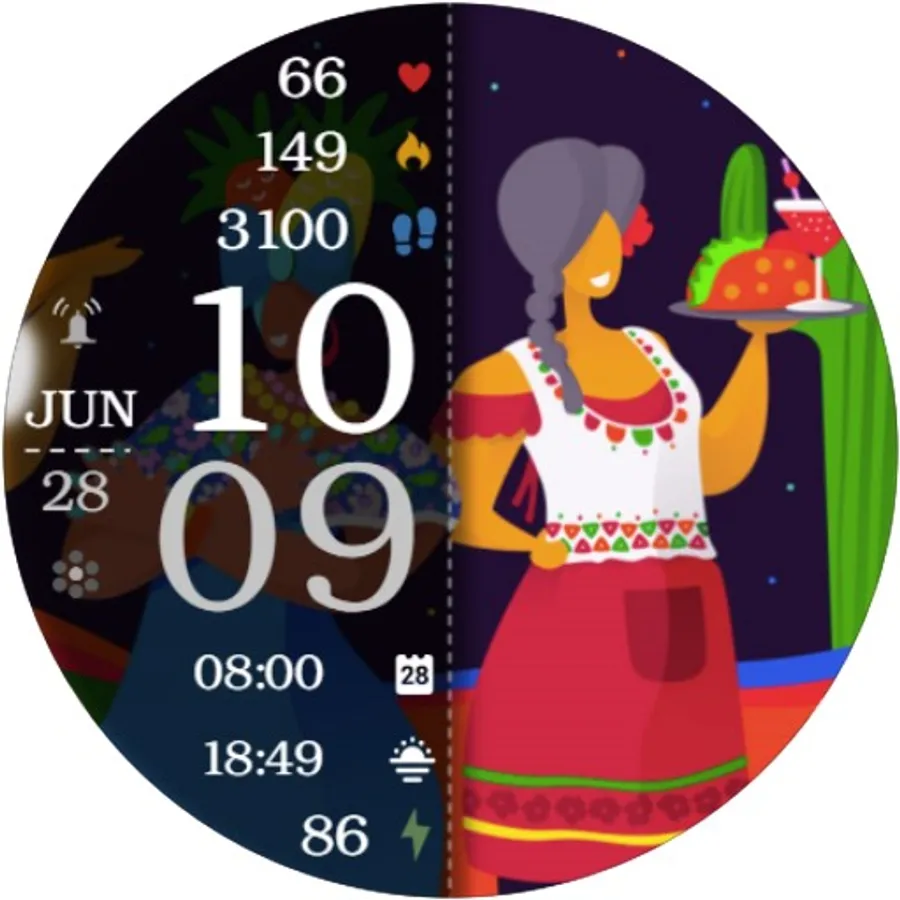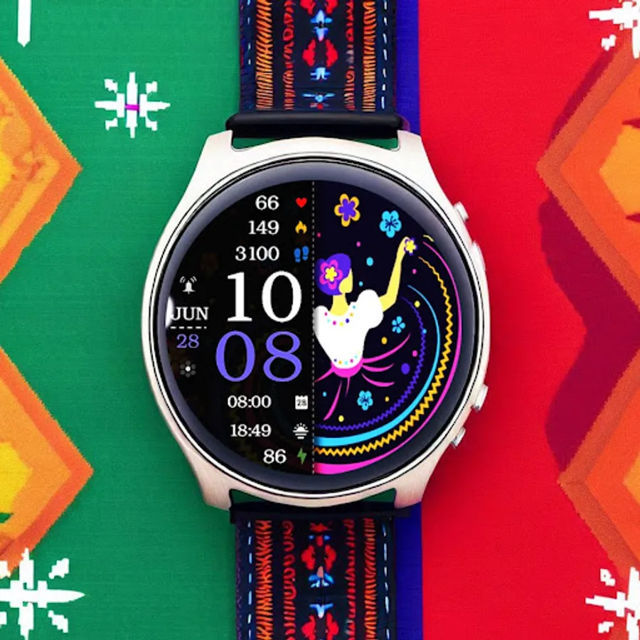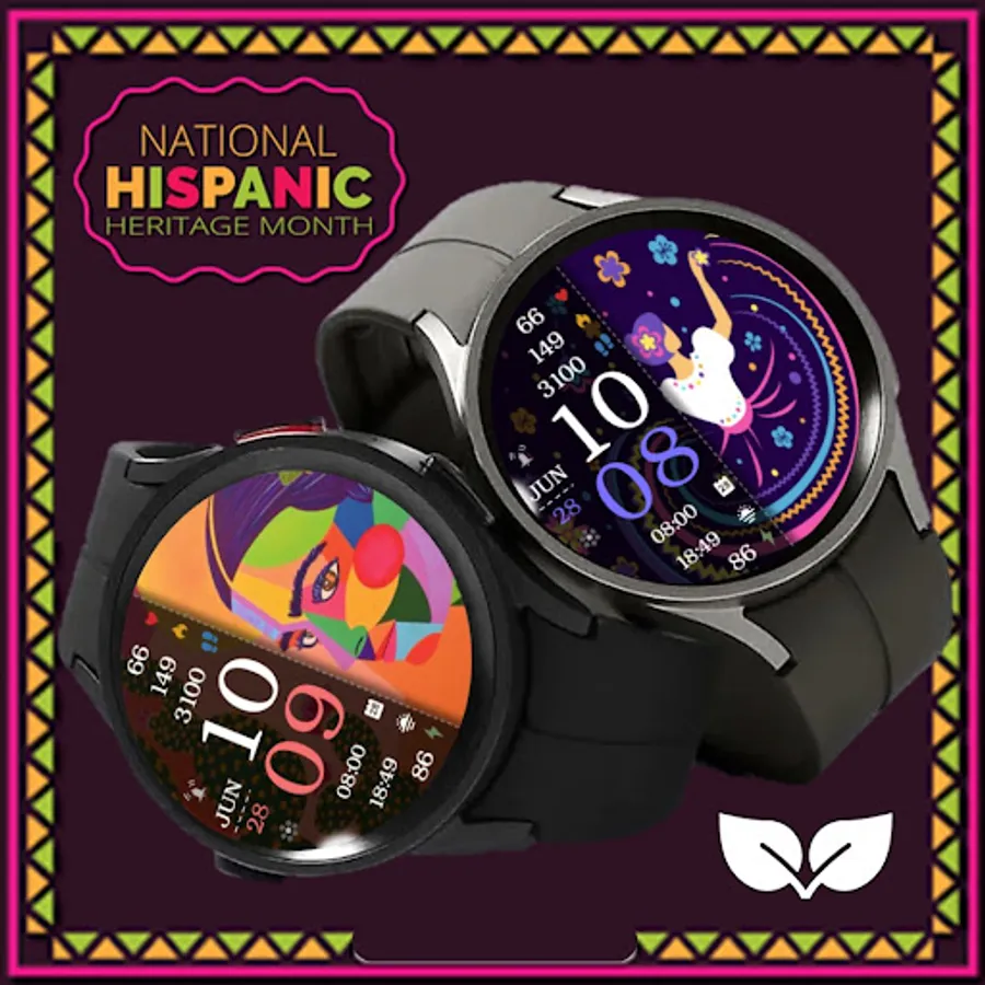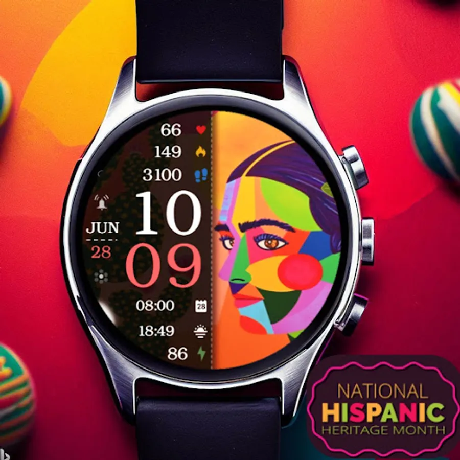 ⌚︎ On this beautiful Hispanic heritage themed watch-face you will see all important information like Digital time 12-24h time format, Date information, Battery percentage Steps and Heart rate, 2 custom complications