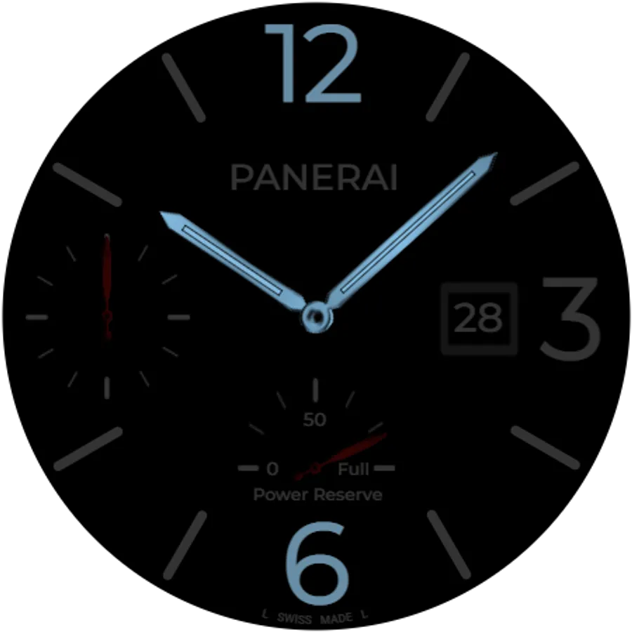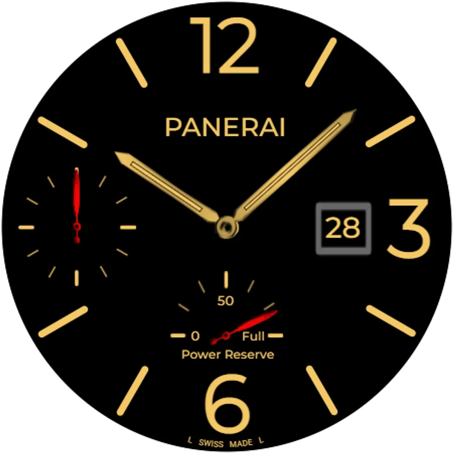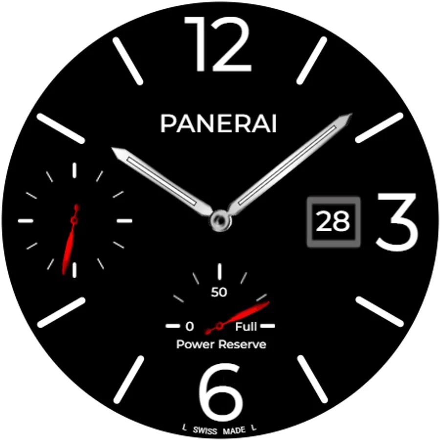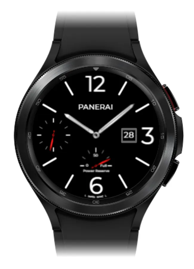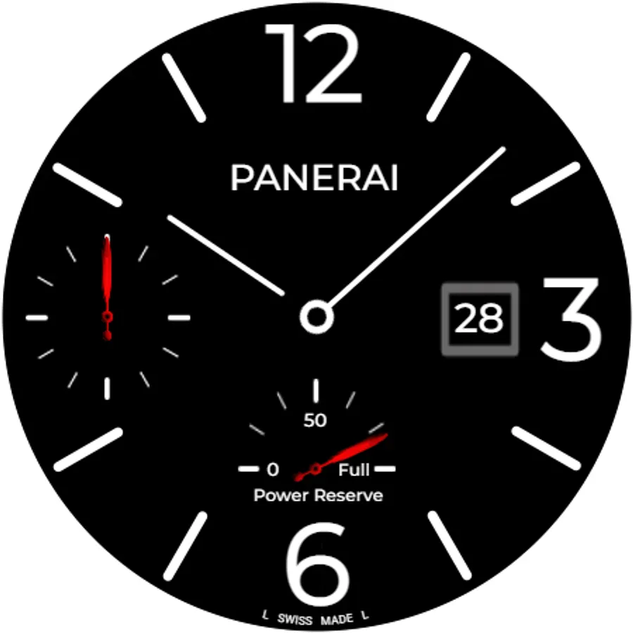 - Second hand at 9 o'clock, battery status indication at 6 o'clock.