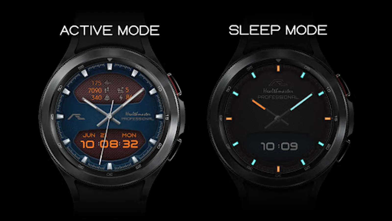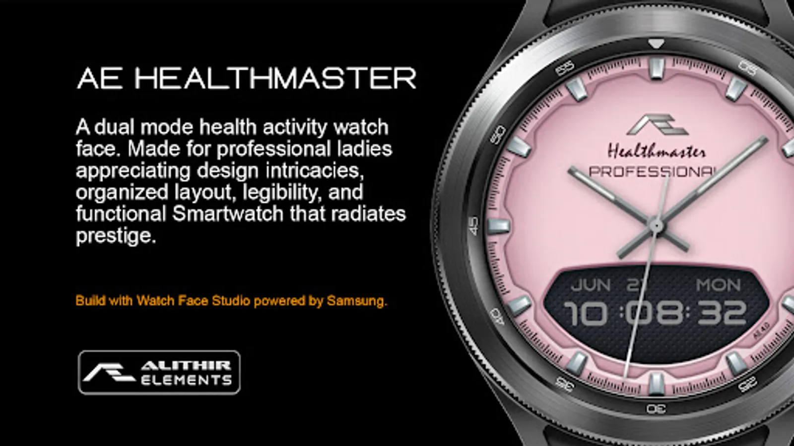 A dual mode health activity watch face. Made for professional ladies appreciating design intricacies, organized layout, legibility, and functional Smartwatch that radiates prestige.