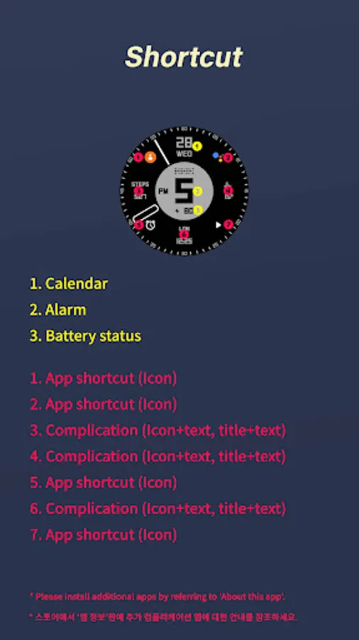 Please install the additional app of the link below on the watch and smartphone, and set up the complication.