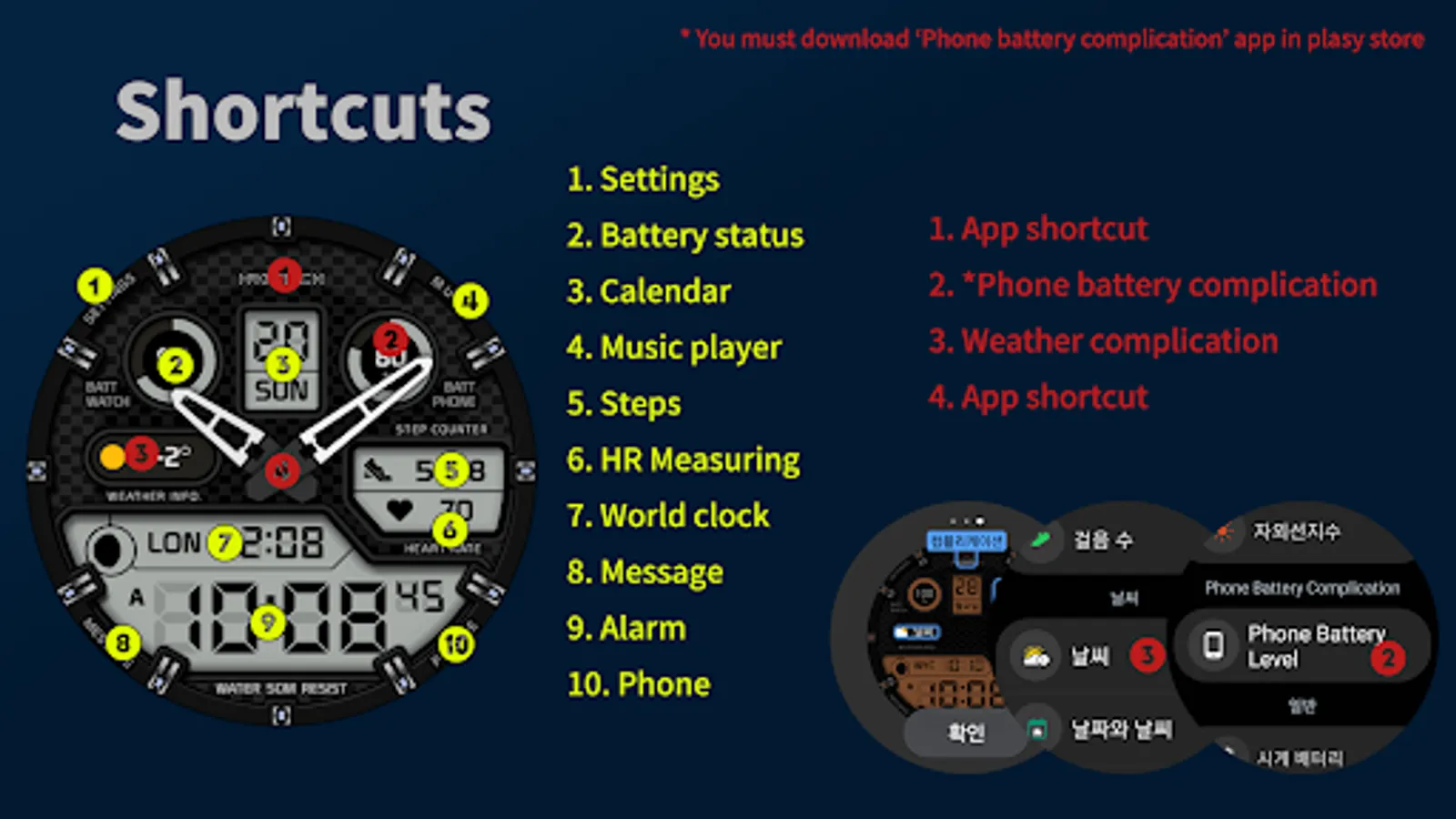 Please install the additional app of the link below on the watch and smartphone, and set up the complication.