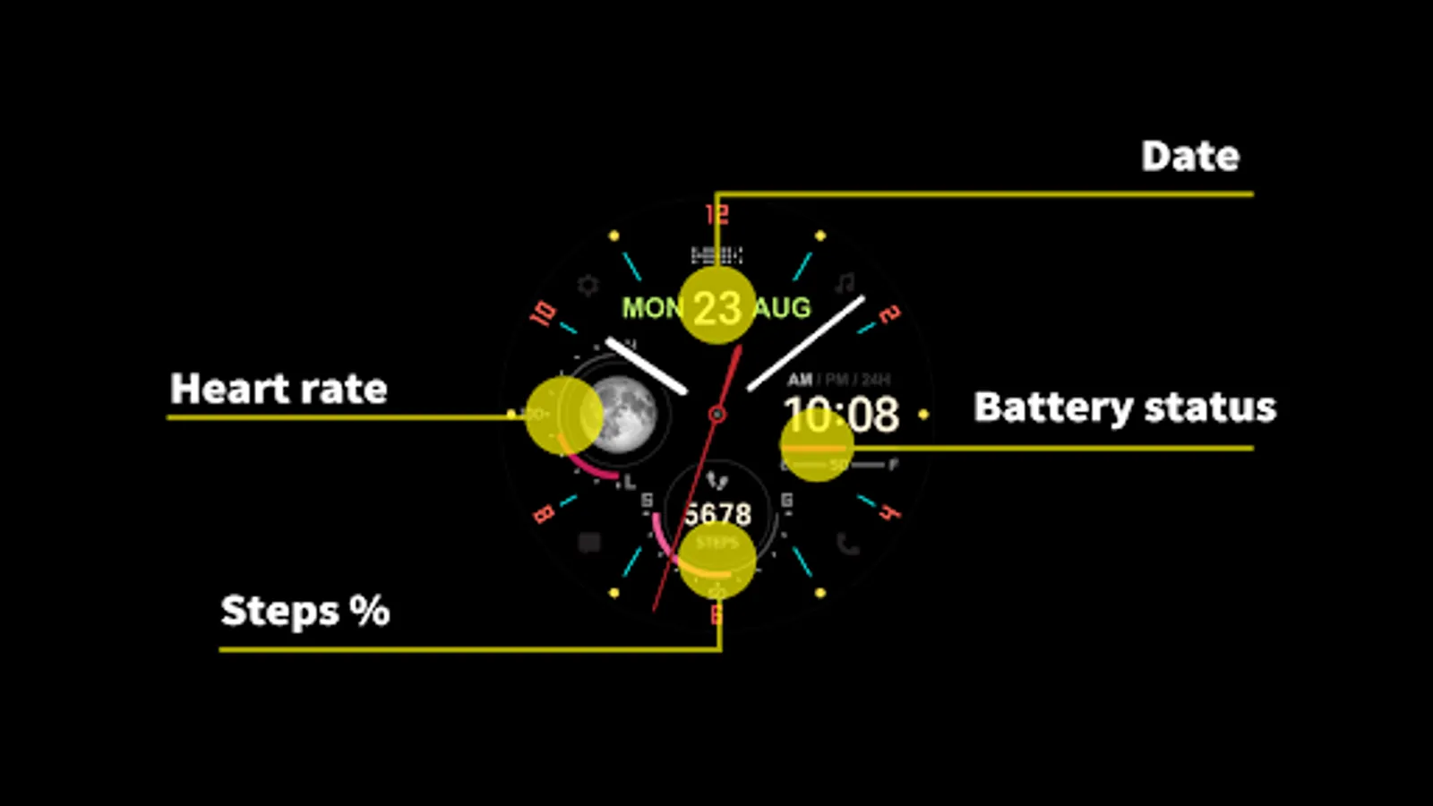 The 9 o'clock direction gauge is heart rate and the 6 way gauge is gait percentage.