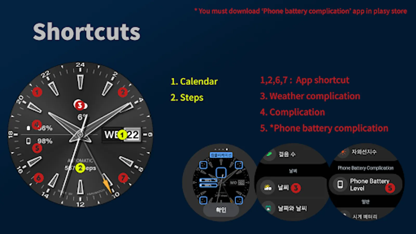 Please install the additional app of the link below on the watch and smartphone, and set up the complication.
