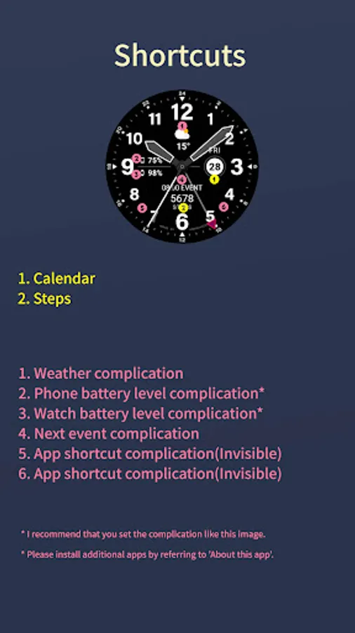 Please install the additional app of the link below on the watch and smartphone, and set up the complication.
