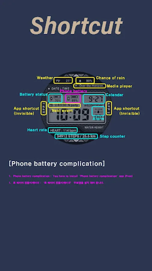 Please install the additional app of the link below on the watch and smartphone, and set up the complication.