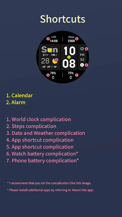 Please install the additional app of the link below on the watch and smartphone, and set up the complication.