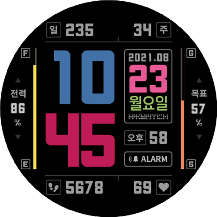 잘 짜여진 구성의 컬러풀한 워치페이스 입니다.