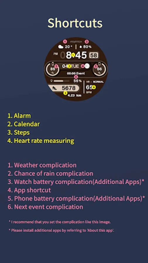 Please install the additional app of the link below on the watch and smartphone, and set up the complication.