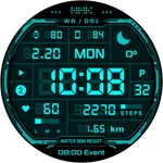 This app displays a digital watch face on Wear OS devices and includes features such as time, calendar, heart rate, and step count. Includes battery, weather, alarms, and app shortcuts.
