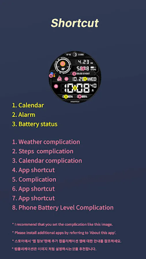 Please install the additional app of the link below on the watch and smartphone, and set up the complication.