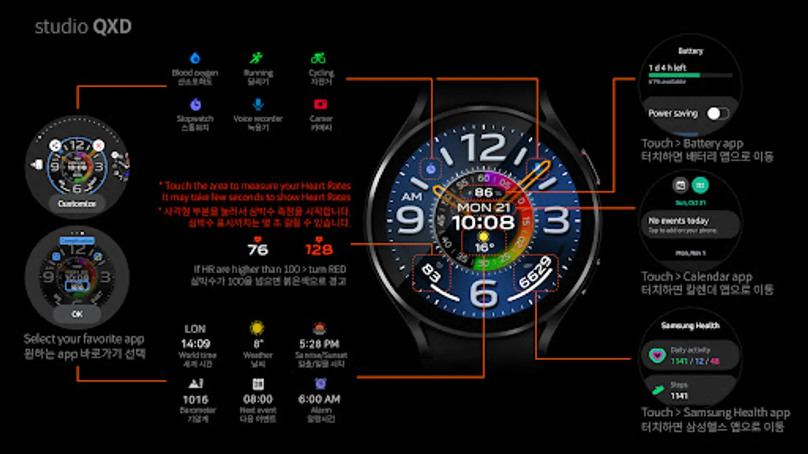 - Customizable information text and icon such as weather, next event, barometer, alarm, etc.