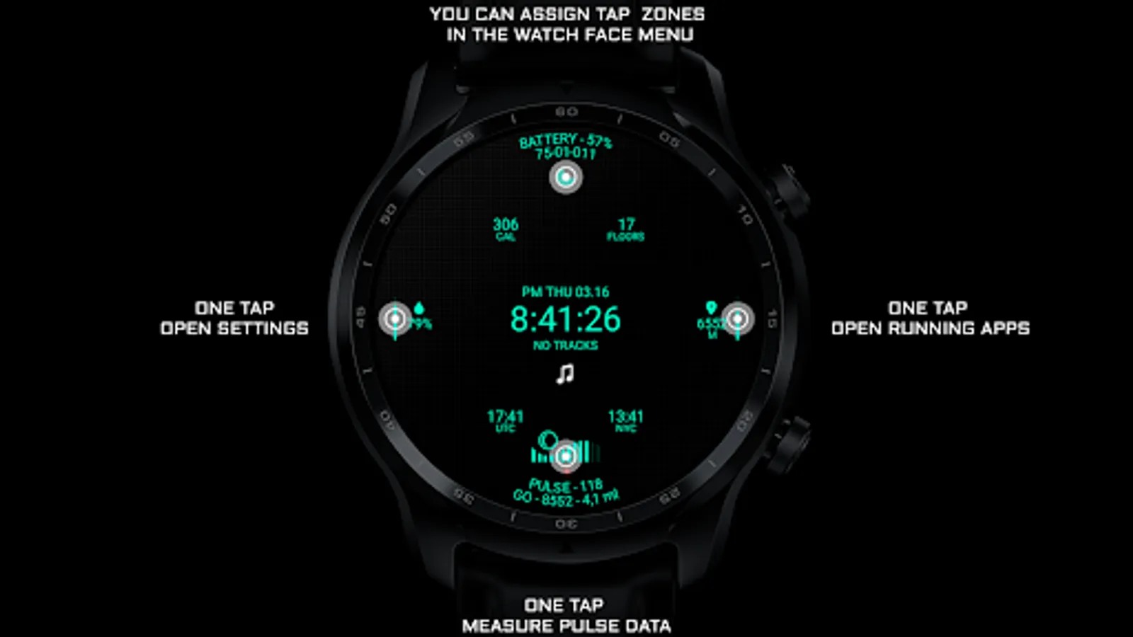 In the watch face available sports data, complications(data), visible and invisible shortcuts for quick access to apps.