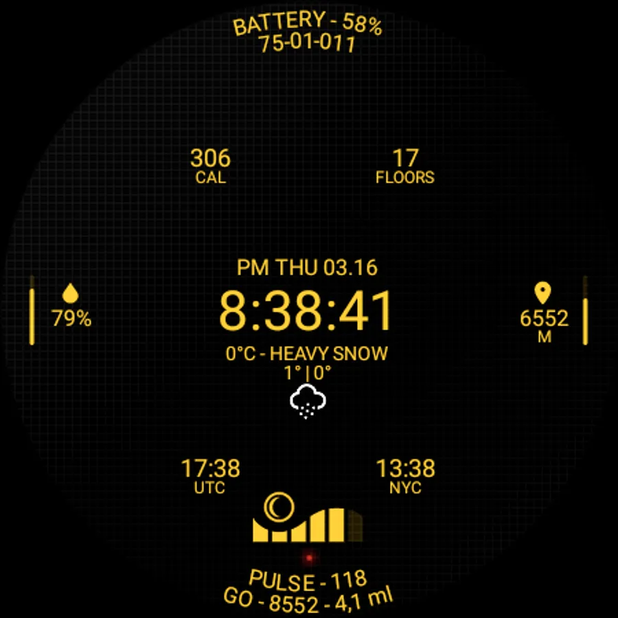 NOTE 2. For the correct display of the information - the watch face must be given permission to use the watch sensors. The watch face displays information from the sensors of the watch, the watch face itself does not generate any information. The watch face does not make any changes to system files, does not change any system settings and user settings, only displays information. Does not collect, transmit or receive any outside data.