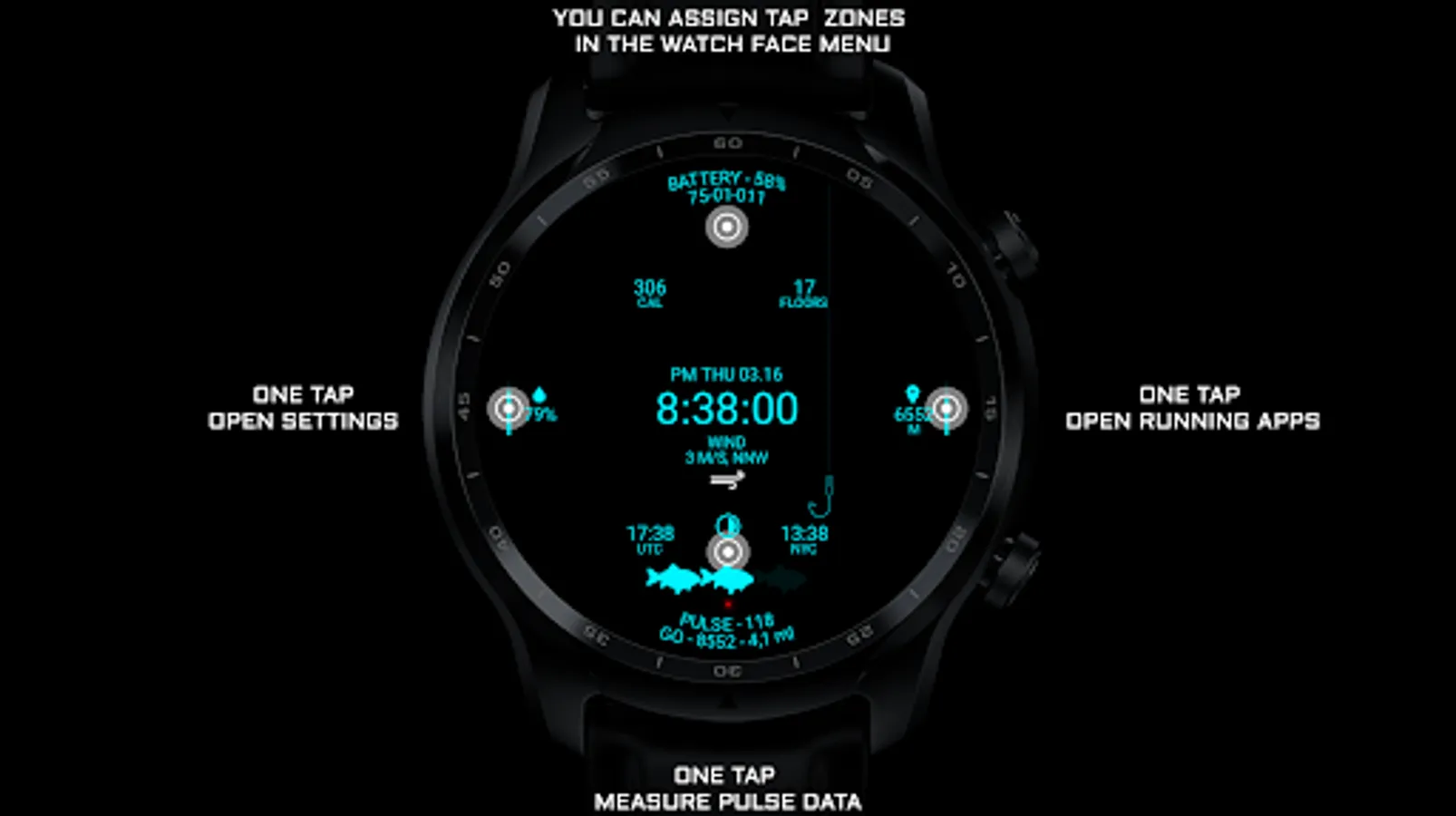 In the watch face available sports data, complications(data), visible shortcuts for quick access to apps.