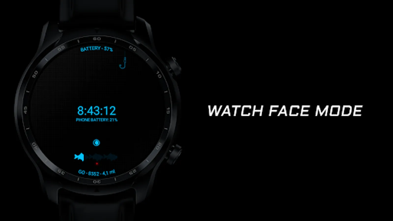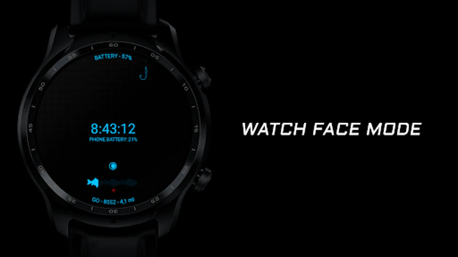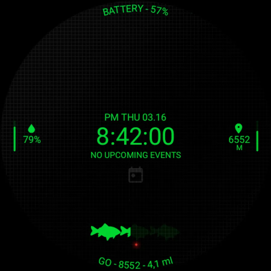 Fish graphic indicator and fishing hook - is the goal steps(20000 stp - 100% goal done).