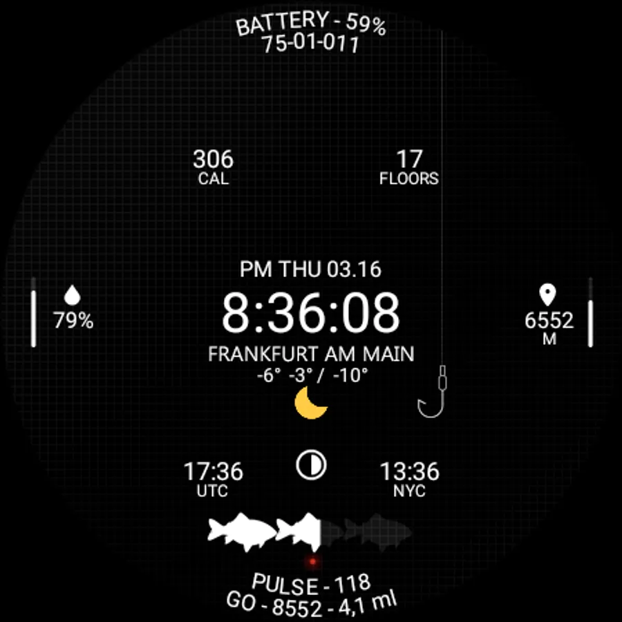 Some information and graphics elements are disabled by default(you can turn it on in the watch face settings).