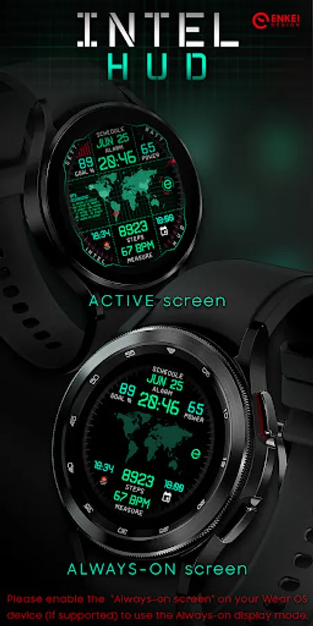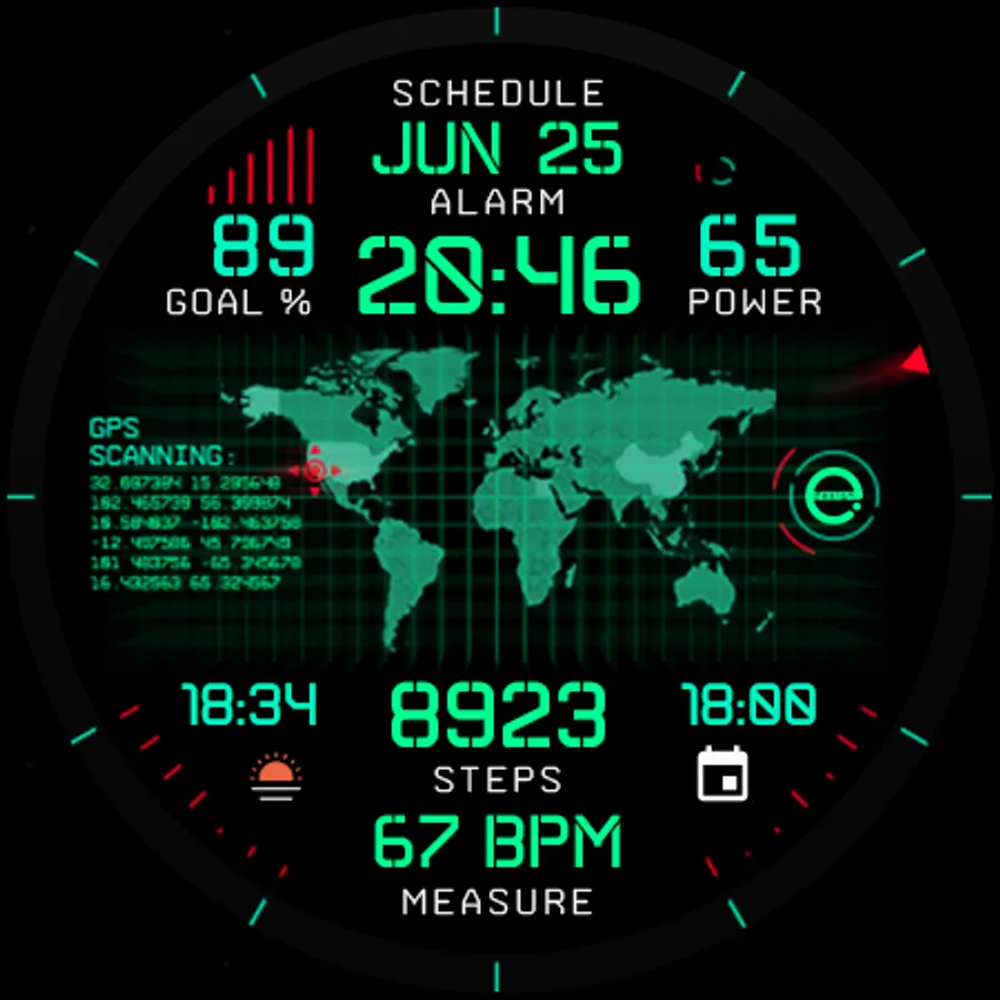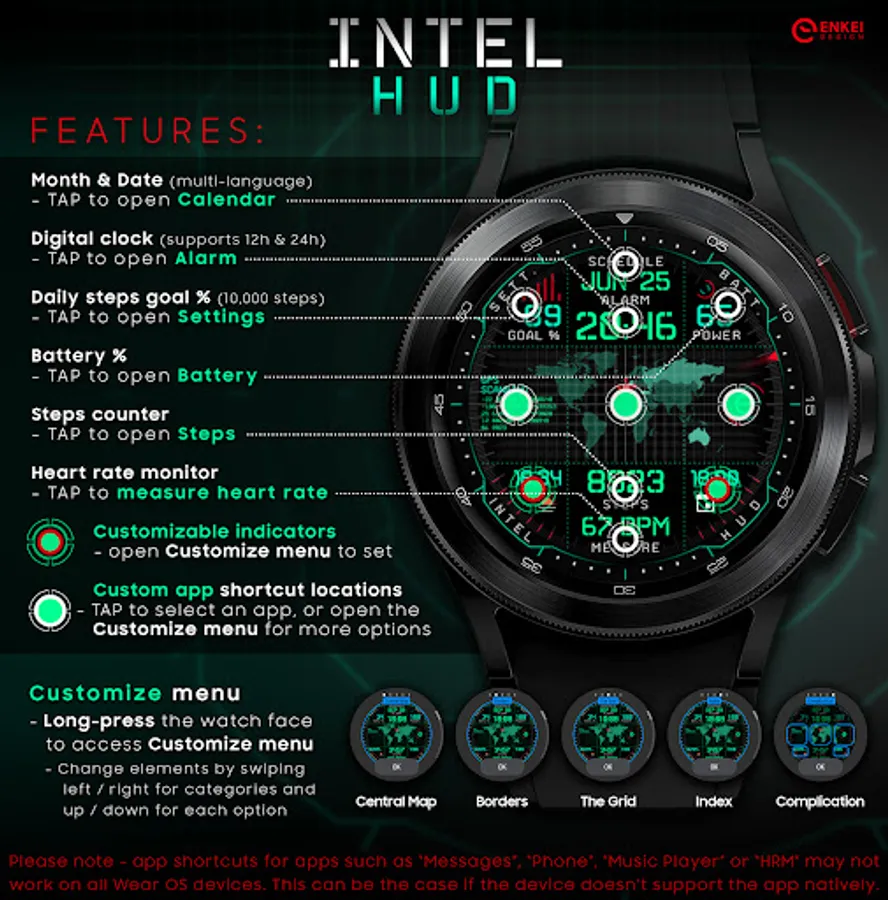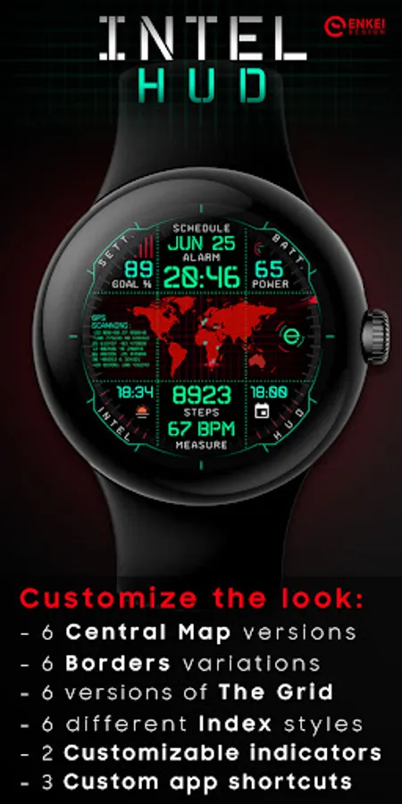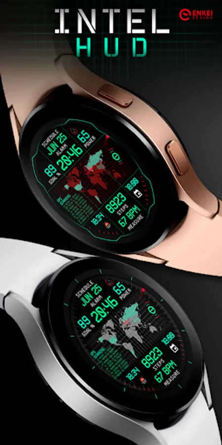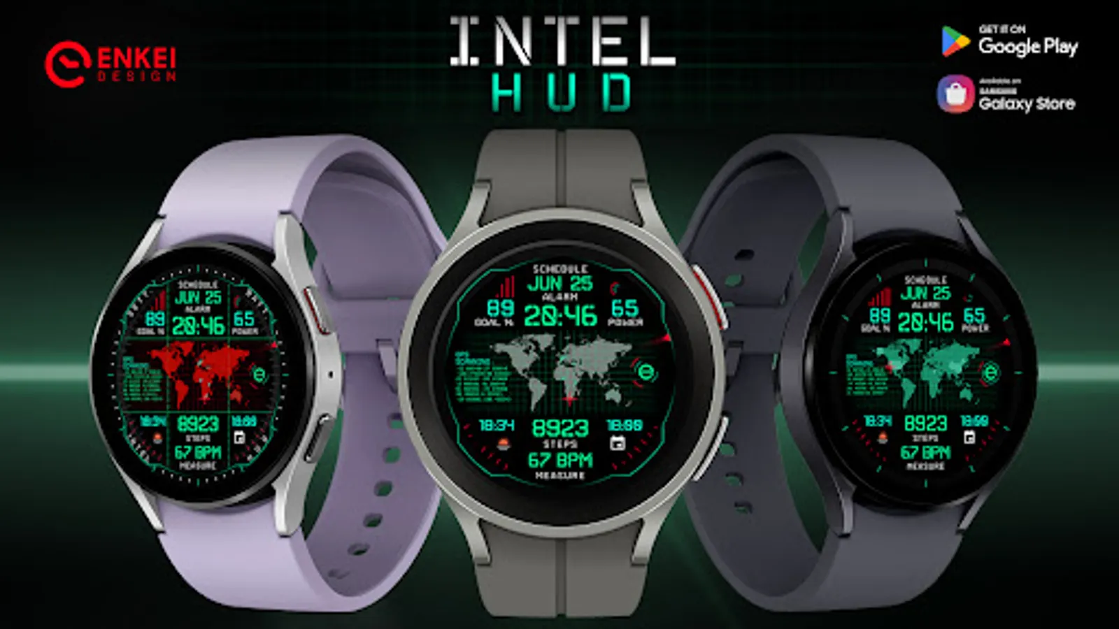 INTEL HUD is a modern digital watch face, featuring bleeding edge high tech animations with an incredible level of detail, simulating advanced military technology.
