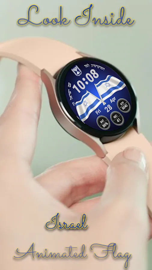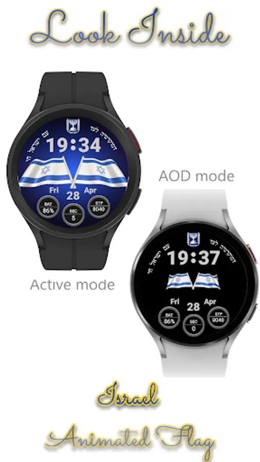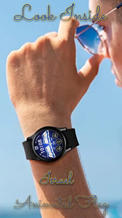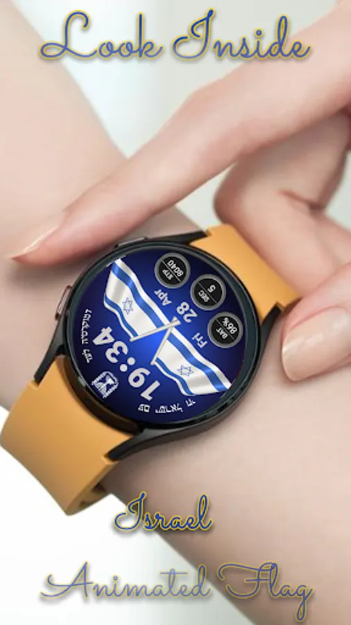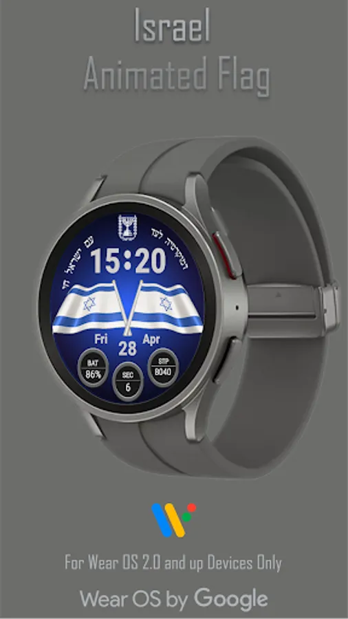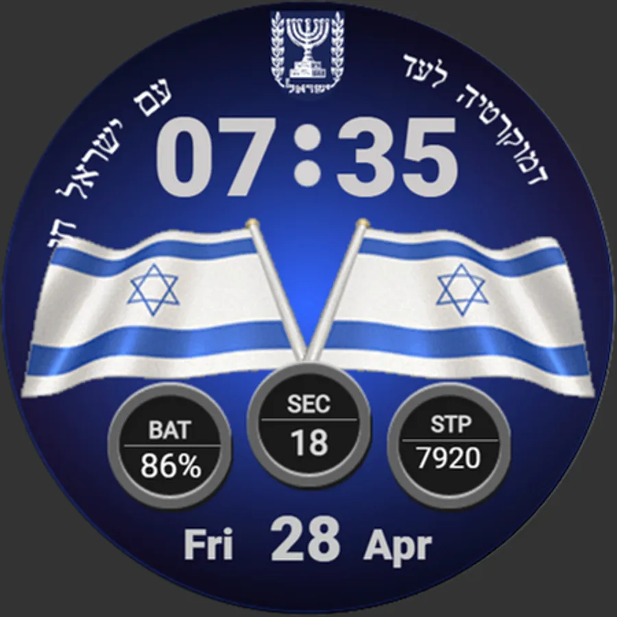 This watchface represents a digital watch with an animated Israel flag.