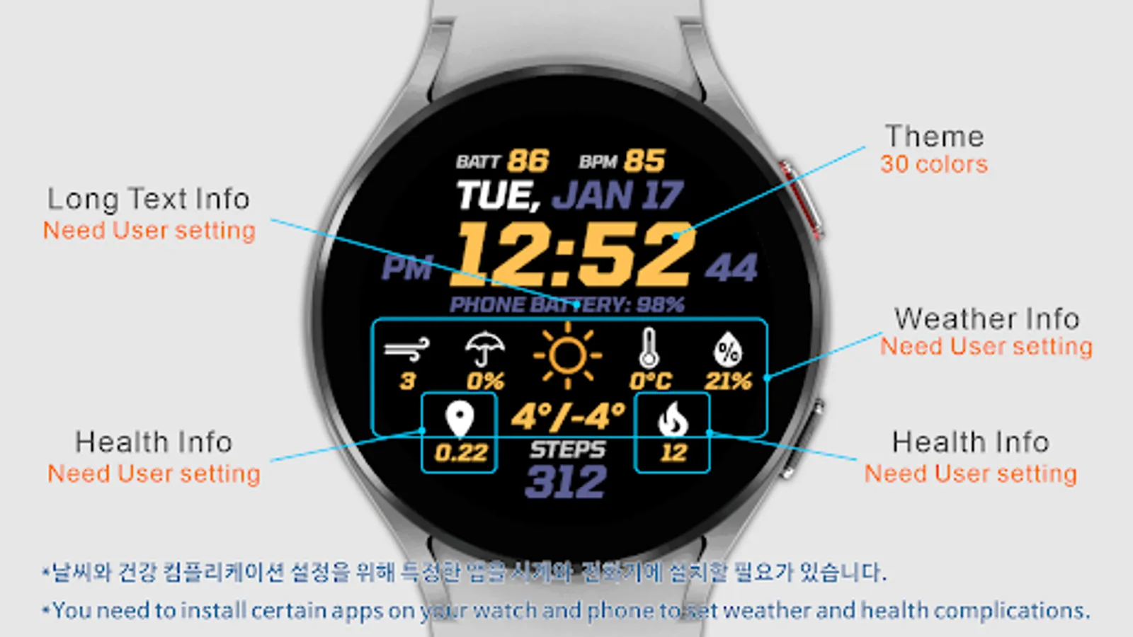 #You need to install certain apps on your watch and phone to set weather and health complications.