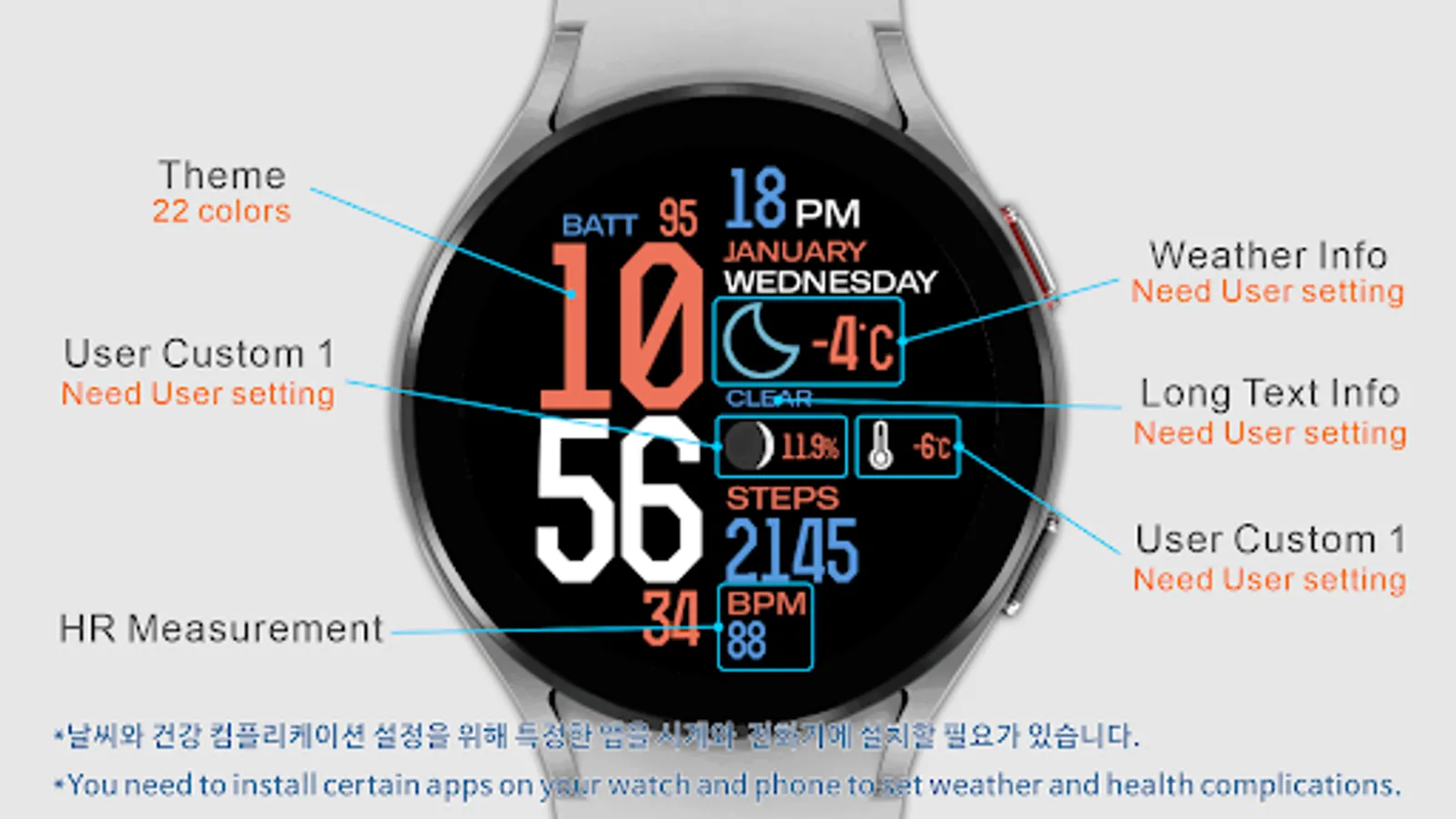 #You need to install certain apps on your watch and phone to set weather and health complications.