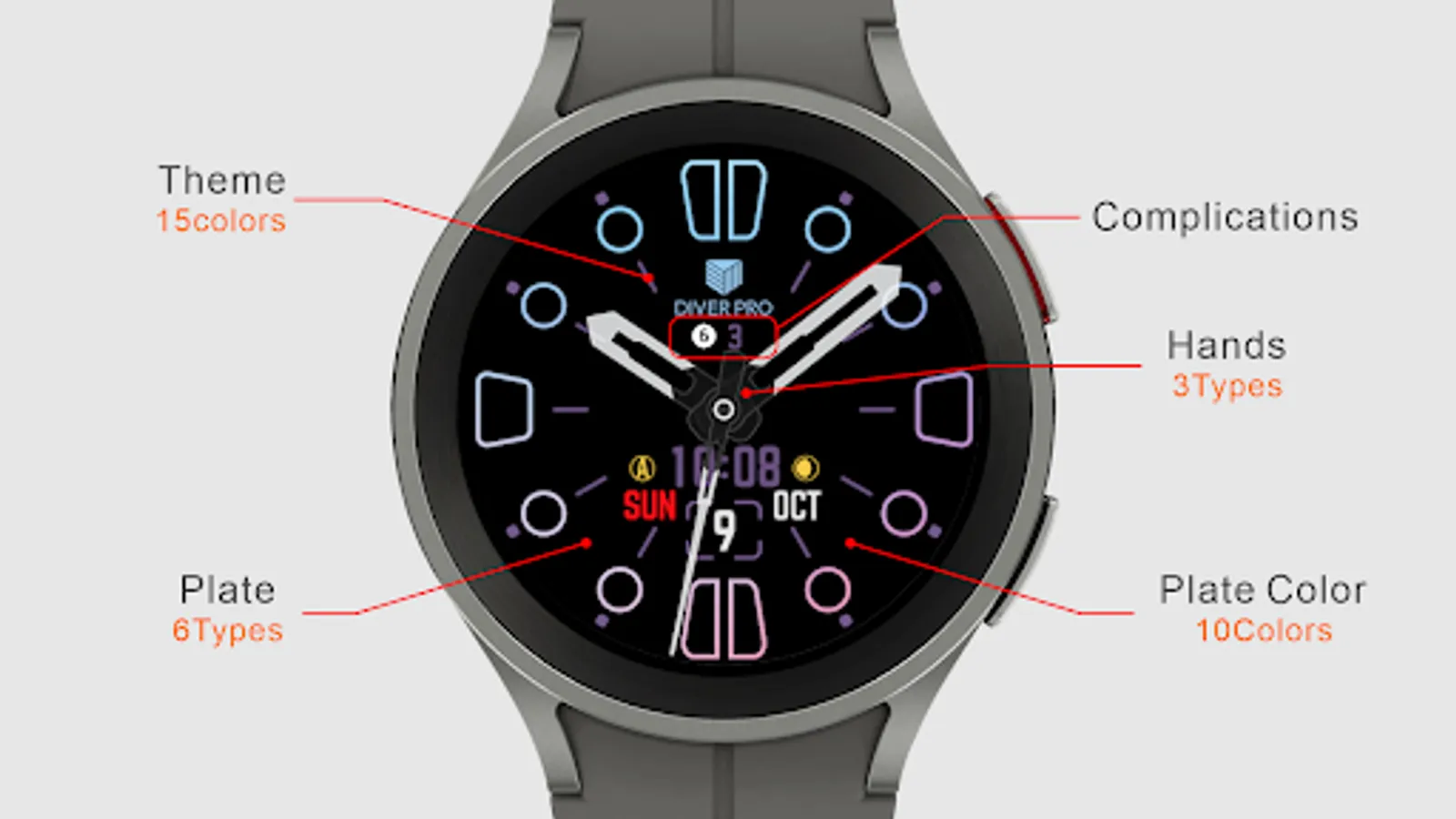 You can select 3 Types(Modern, Diver Pro, Classic Pro) in One Watch face.