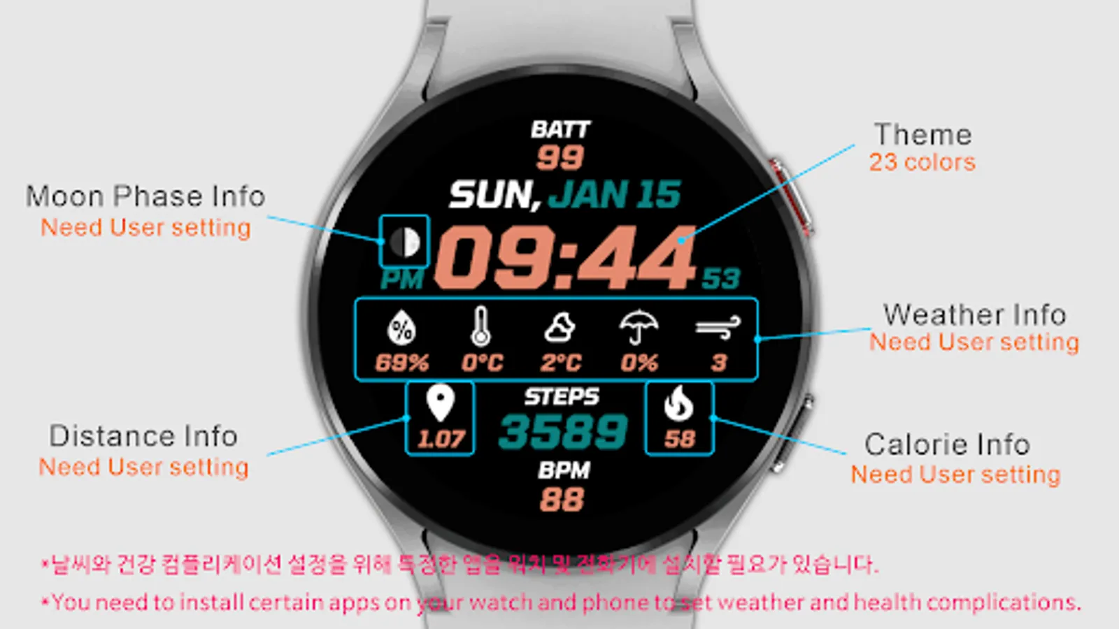 #You need to install certain apps on your watch and phone to set weather and health complications.