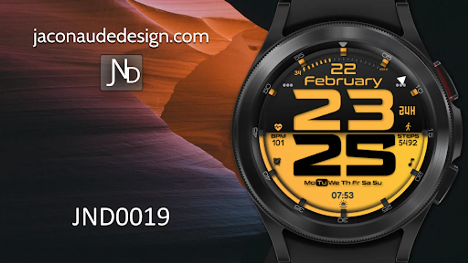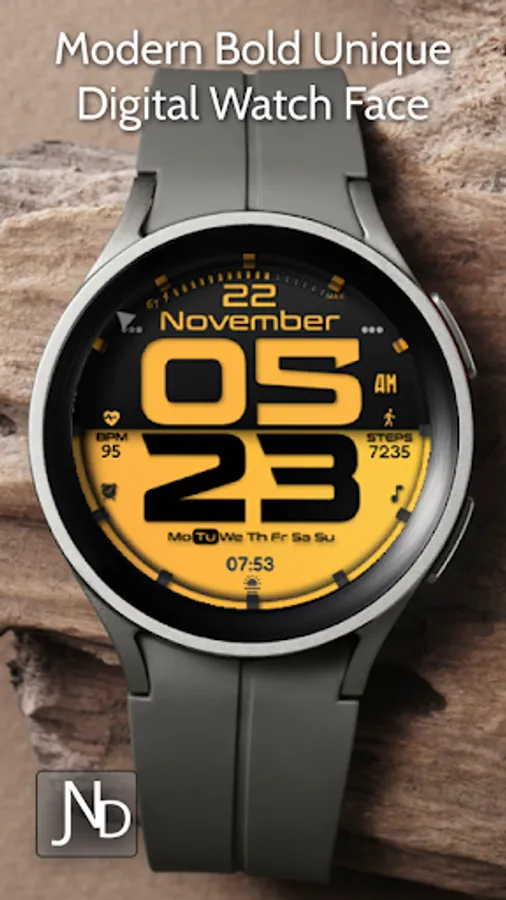 Presenting the JND0019 - A Beautiful Modern looking Stylish Bold Digital watch face for Wear OS from JacoNaudeDesign