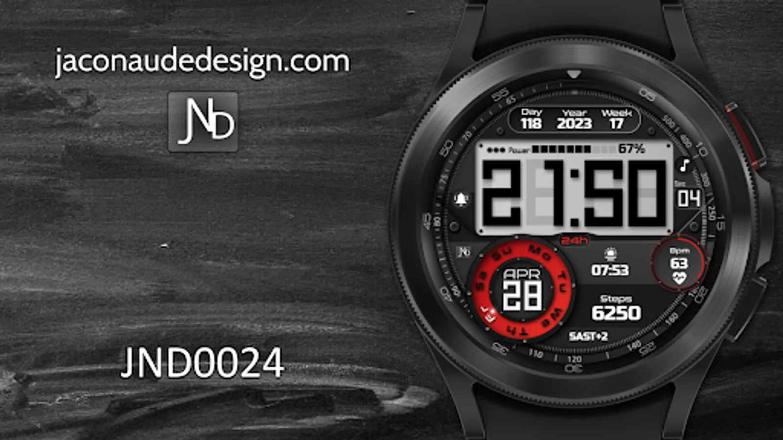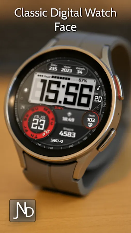 Presenting the JND0024 - A Beautiful Classic looking Digital watch face for Wear OS from JacoNaudeDesign