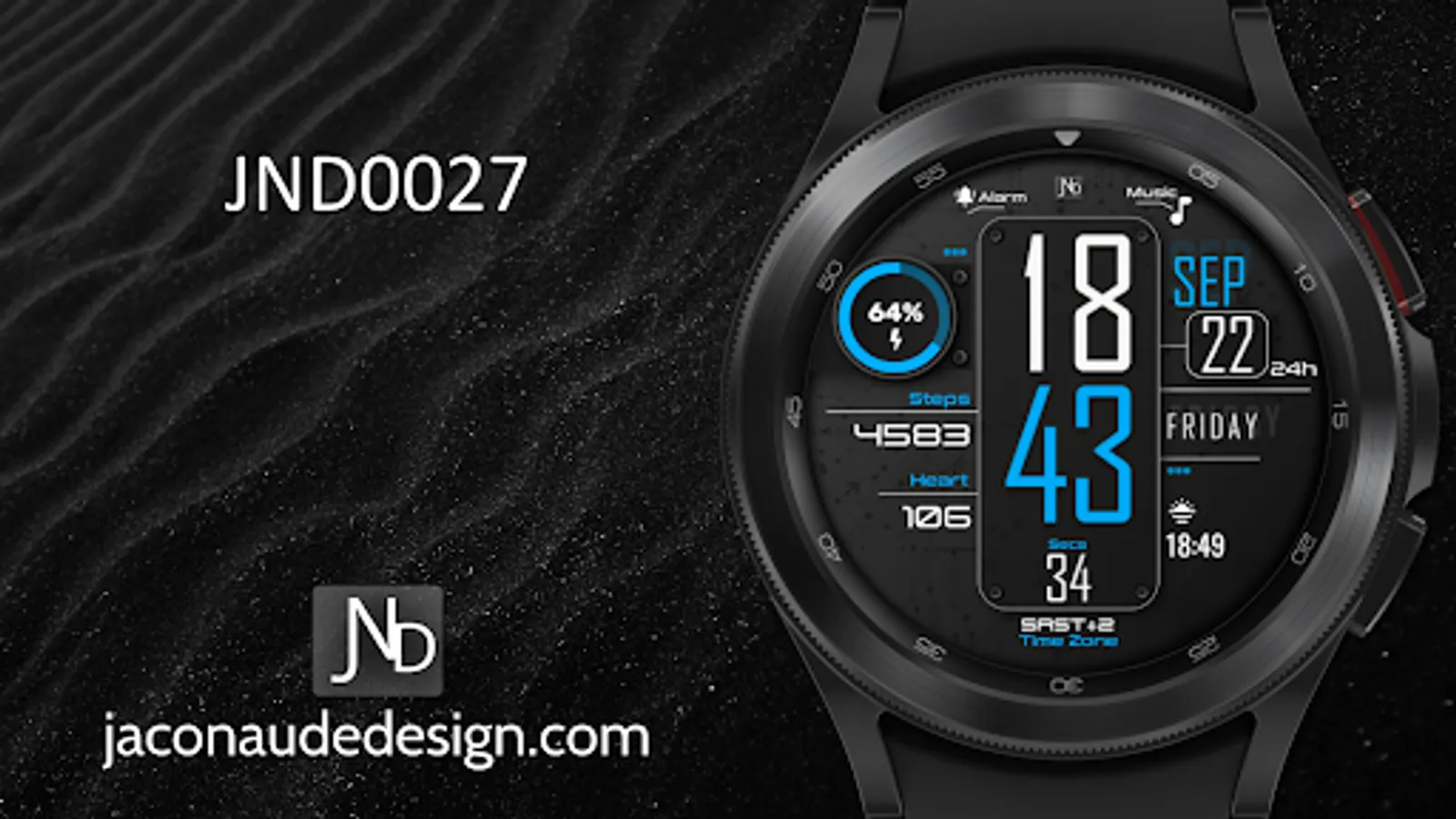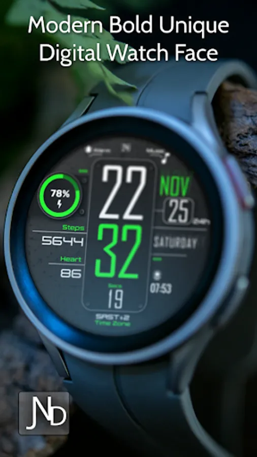 Presenting the JND0023 - A Beautiful Modern looking Stylish Digital watch face for Wear OS from JacoNaudeDesign