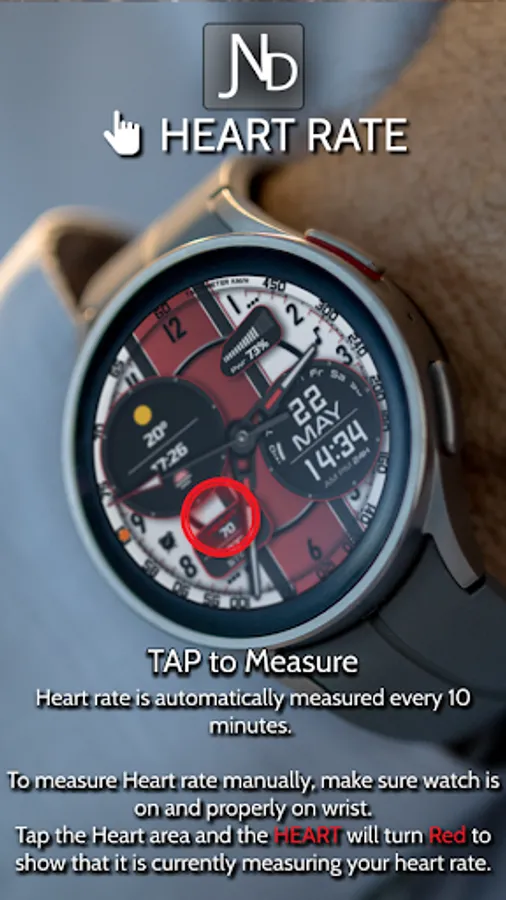 Tap the Heart rate shortcut. It will turn red to show you it is measuring and white when it is done. After the first manual measurement, the watch face will
