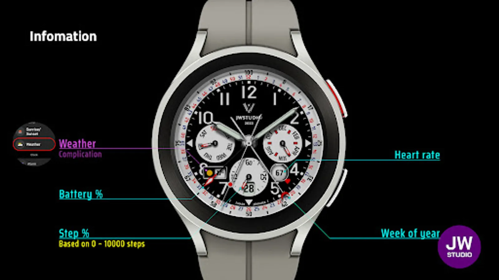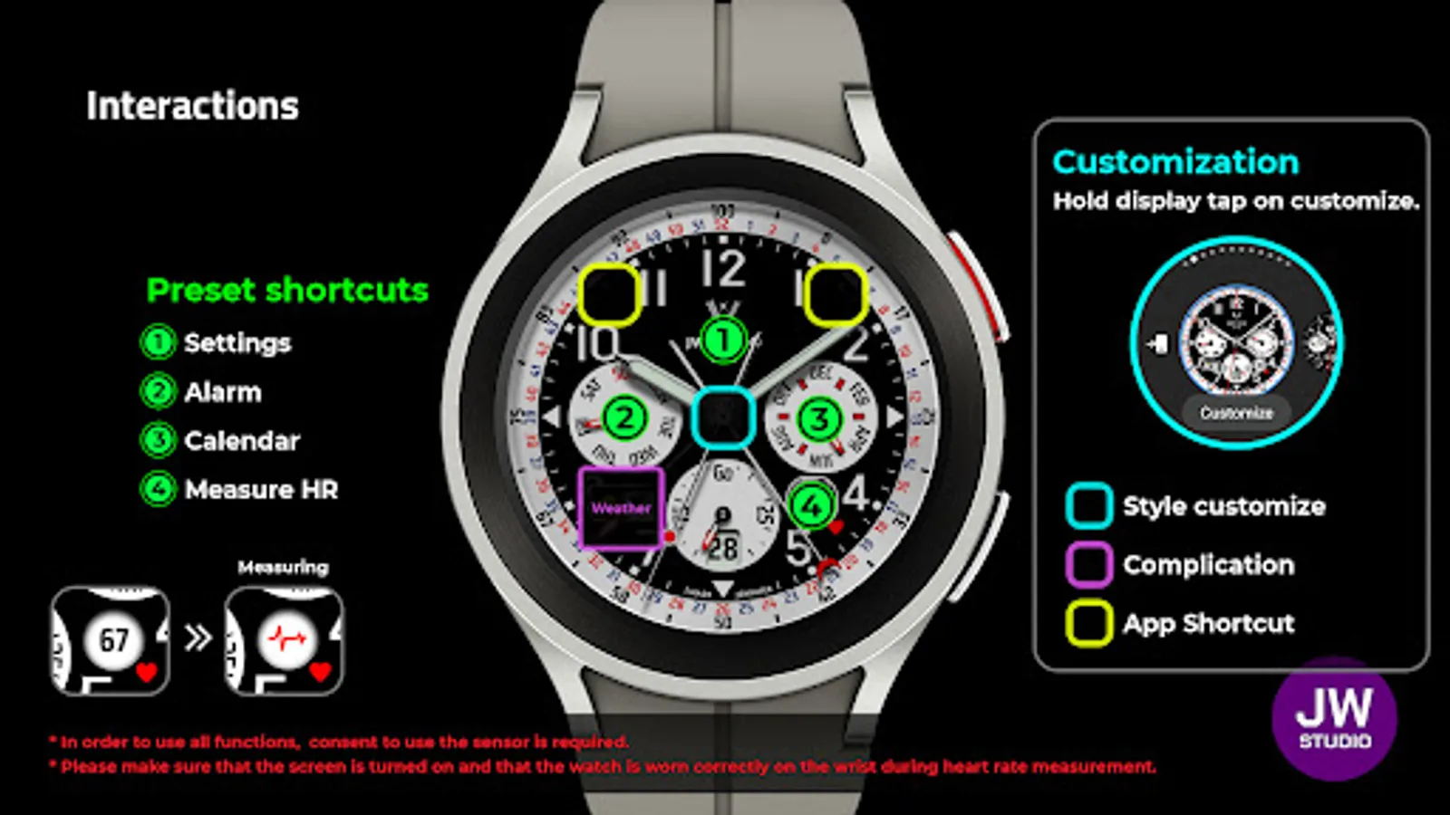 * 이 시계 모드는 Samsung Galaxy Watch 4와 같은 새로운 Wear Os Google / One UI Samsung 운영 체제 기반 장치용 Samsung의 새로운 "Watch Face Studio" 도구로 개발되었습니다.