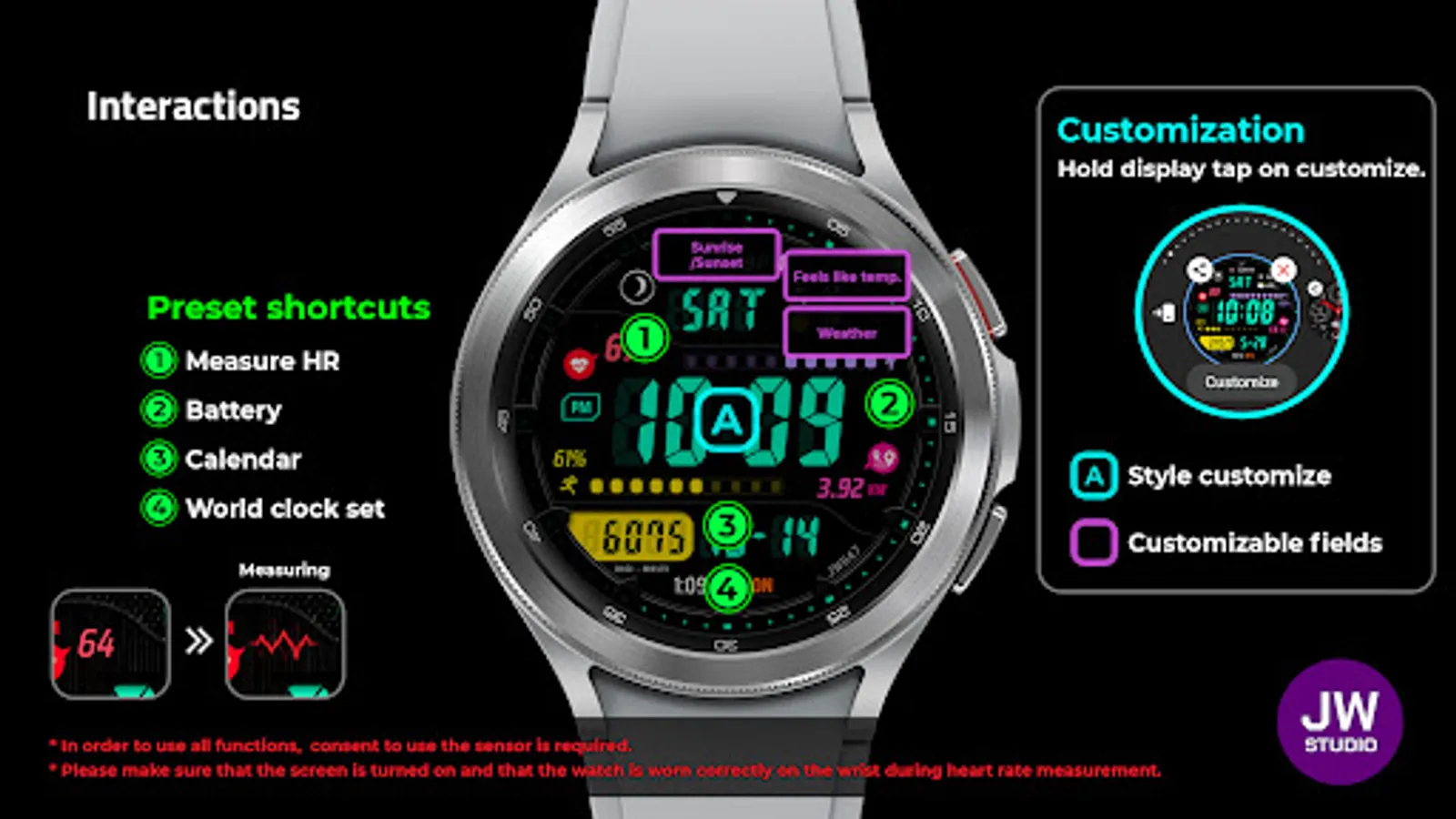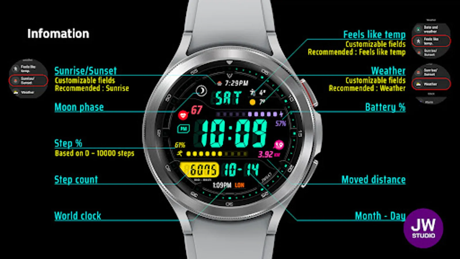 * 이 시계 모드는 Samsung Galaxy Watch 4와 같은 새로운 Wear Os Google / One UI Samsung 운영 체제 기반 장치용 Samsung의 새로운 "Watch Face Studio" 도구로 개발되었습니다.