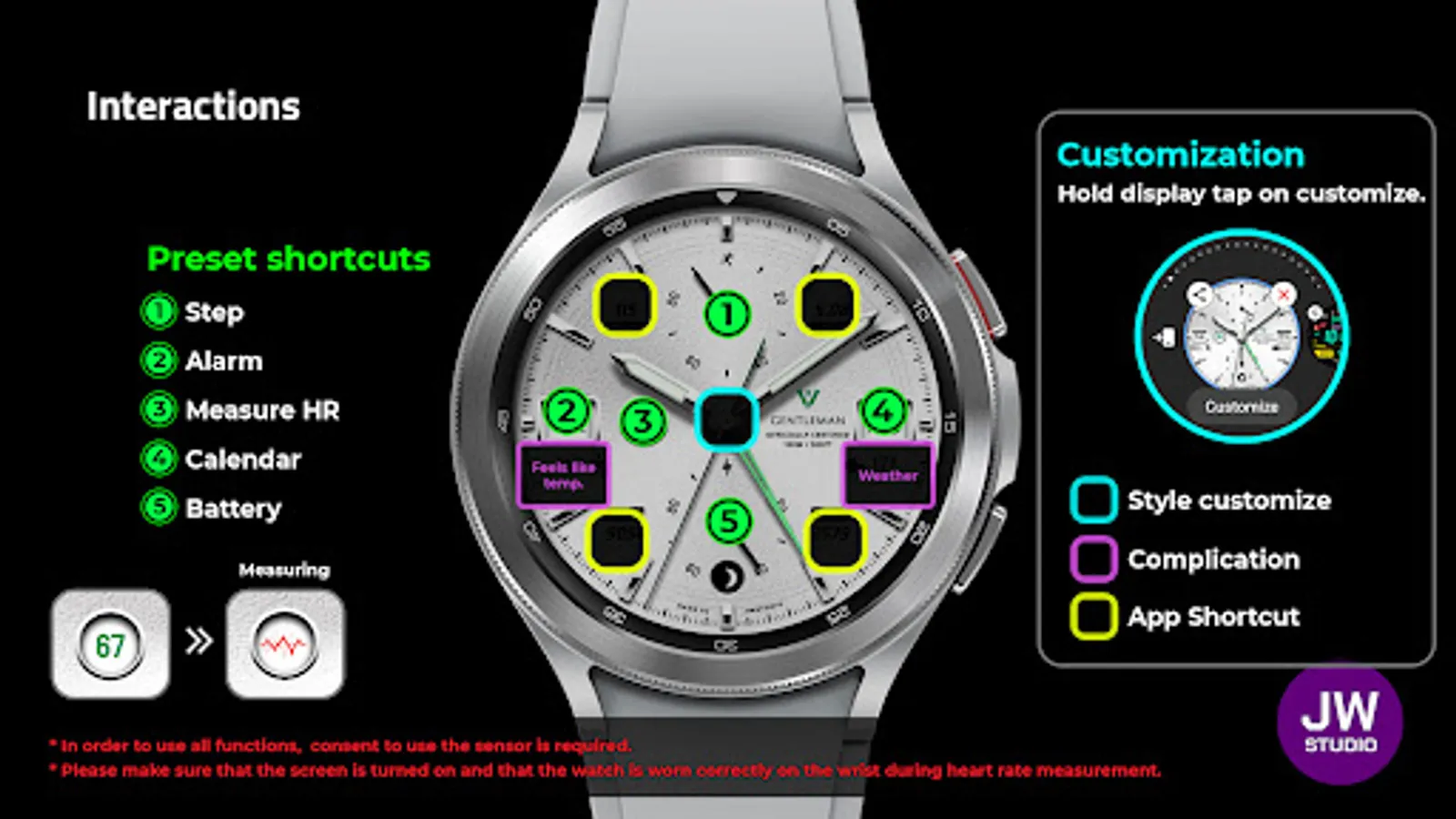 * 이 시계 모드는 Samsung Galaxy Watch 4와 같은 새로운 Wear Os Google / One UI Samsung 운영 체제 기반 장치용 Samsung의 새로운 "Watch Face Studio" 도구로 개발되었습니다.