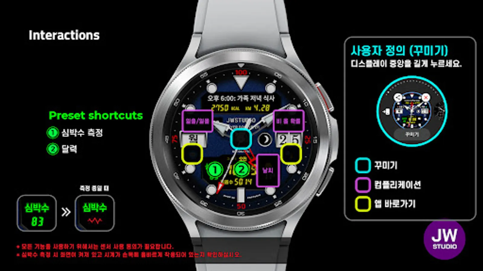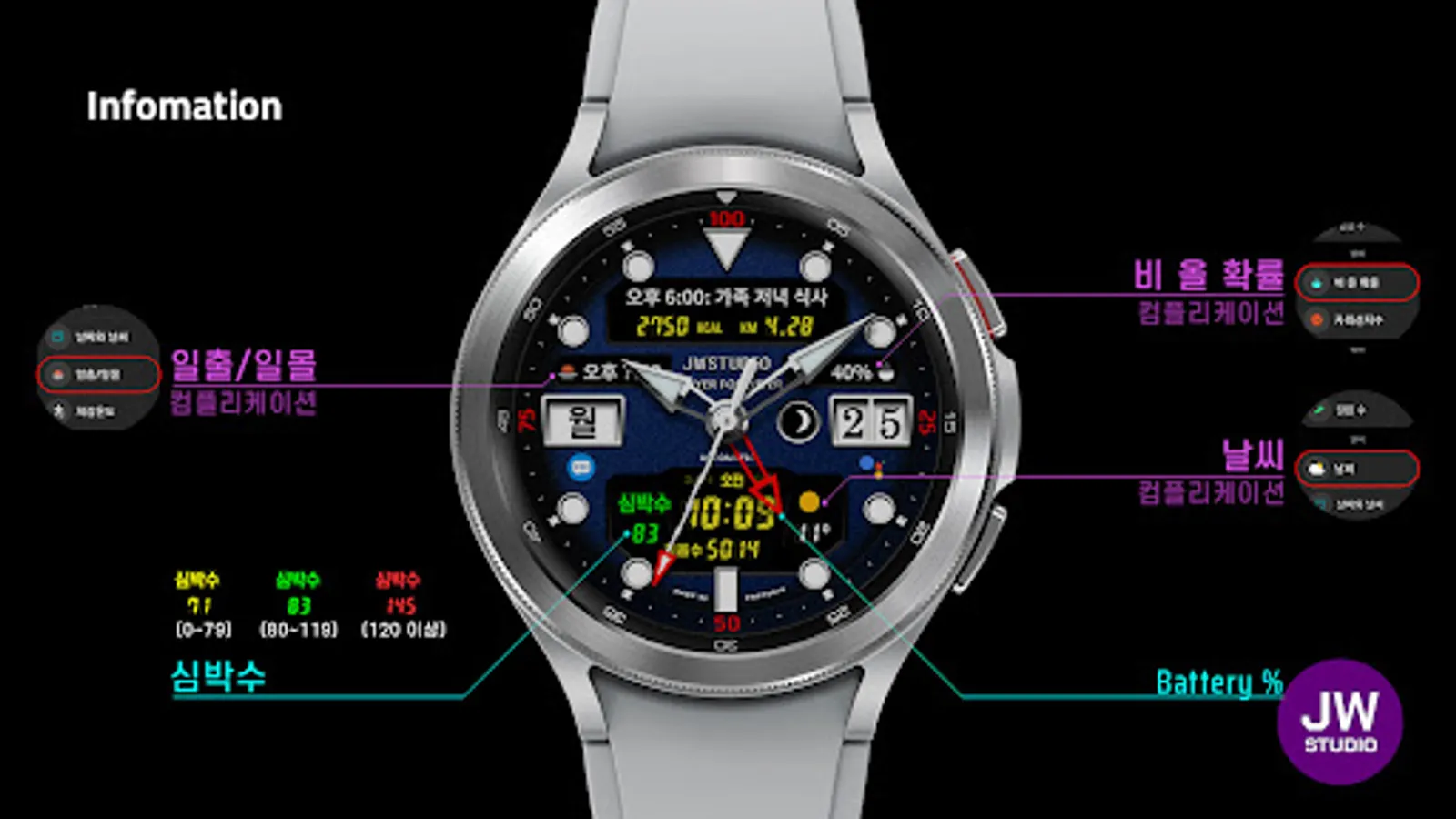 * 이 시계 모드는 Samsung Galaxy Watch 4와 같은 새로운 Wear Os Google / One UI Samsung 운영 체제 기반 장치용 Samsung의 새로운 "Watch Face Studio" 도구로 개발되었습니다.